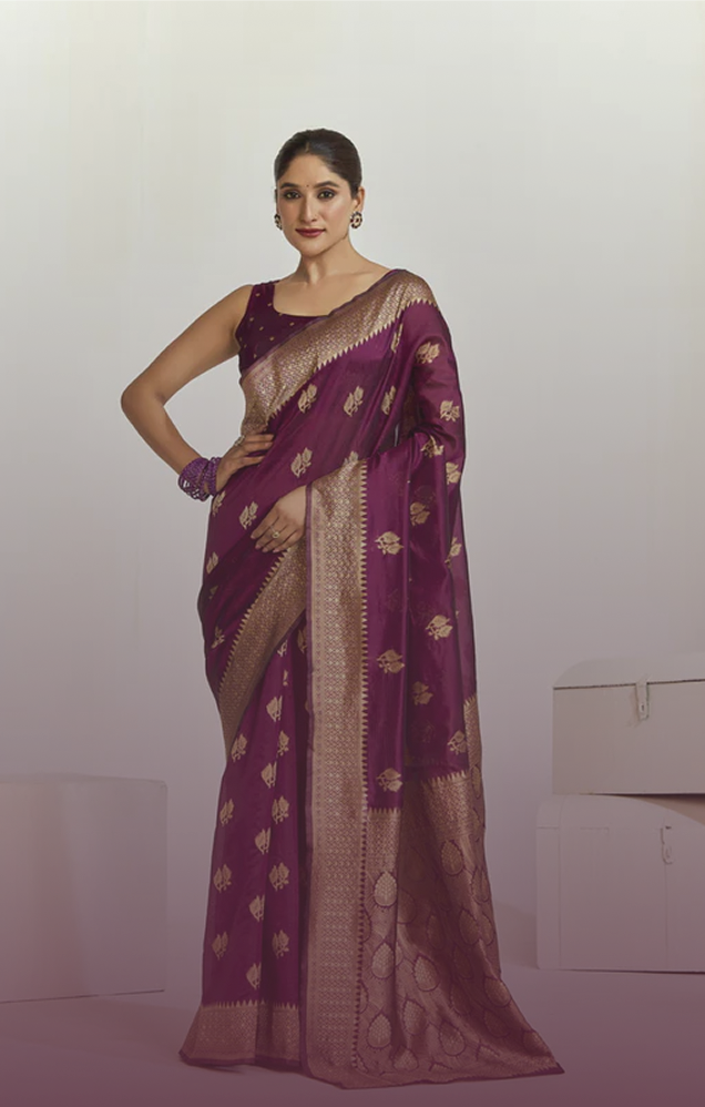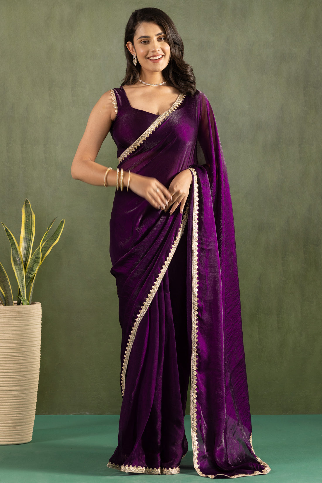 Elevate your ethnic style with the Royal Grape Luxe Ready-to-Wear Saree, crafted to perfection in...