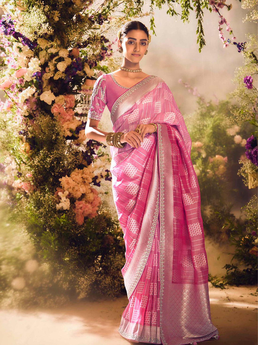 Fabric: Organza Silk Saree Length: 5.5 MBlouse Length : 0.8 MCare Instruction : Dry Clean OnlyManufactured / Packed...