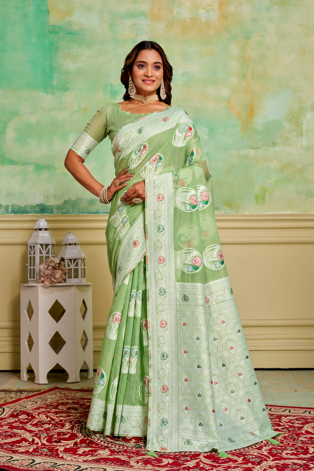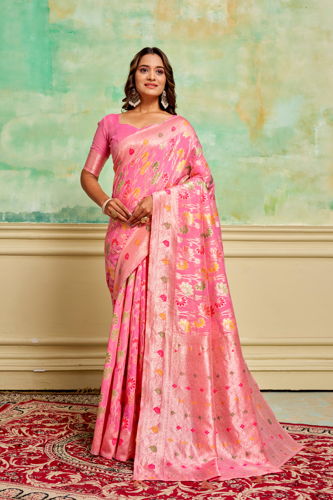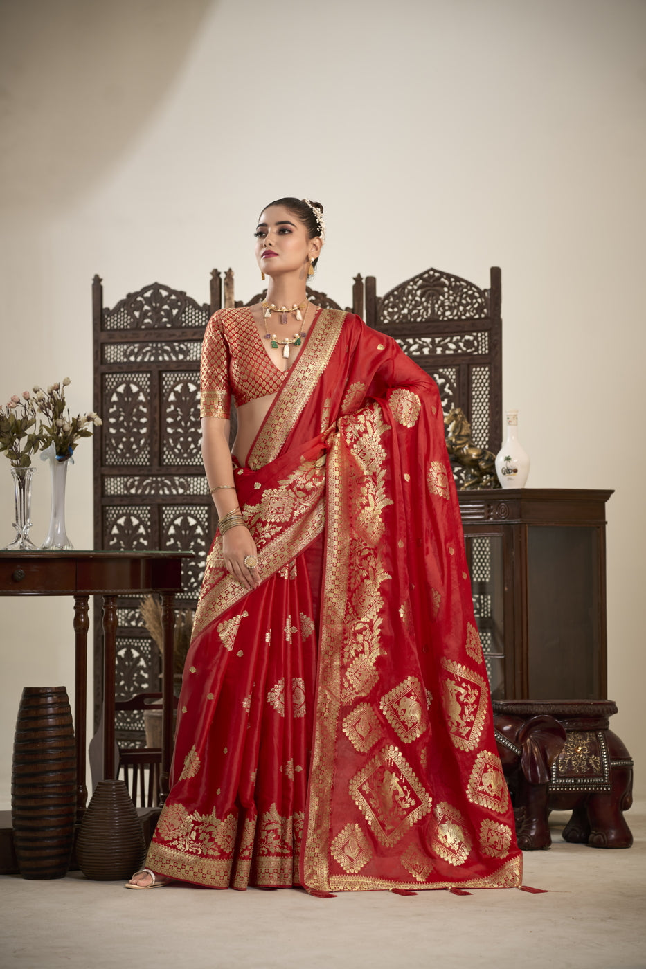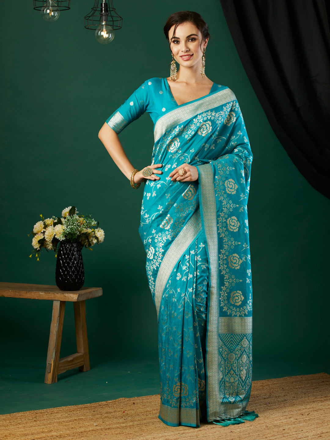 Fabric: Banarasi Silk Saree Length: 5.5 MBlouse Length : 0.8 MCare Instruction : Dry Clean OnlyManufactured / Packed by : FlouriousInclusive...