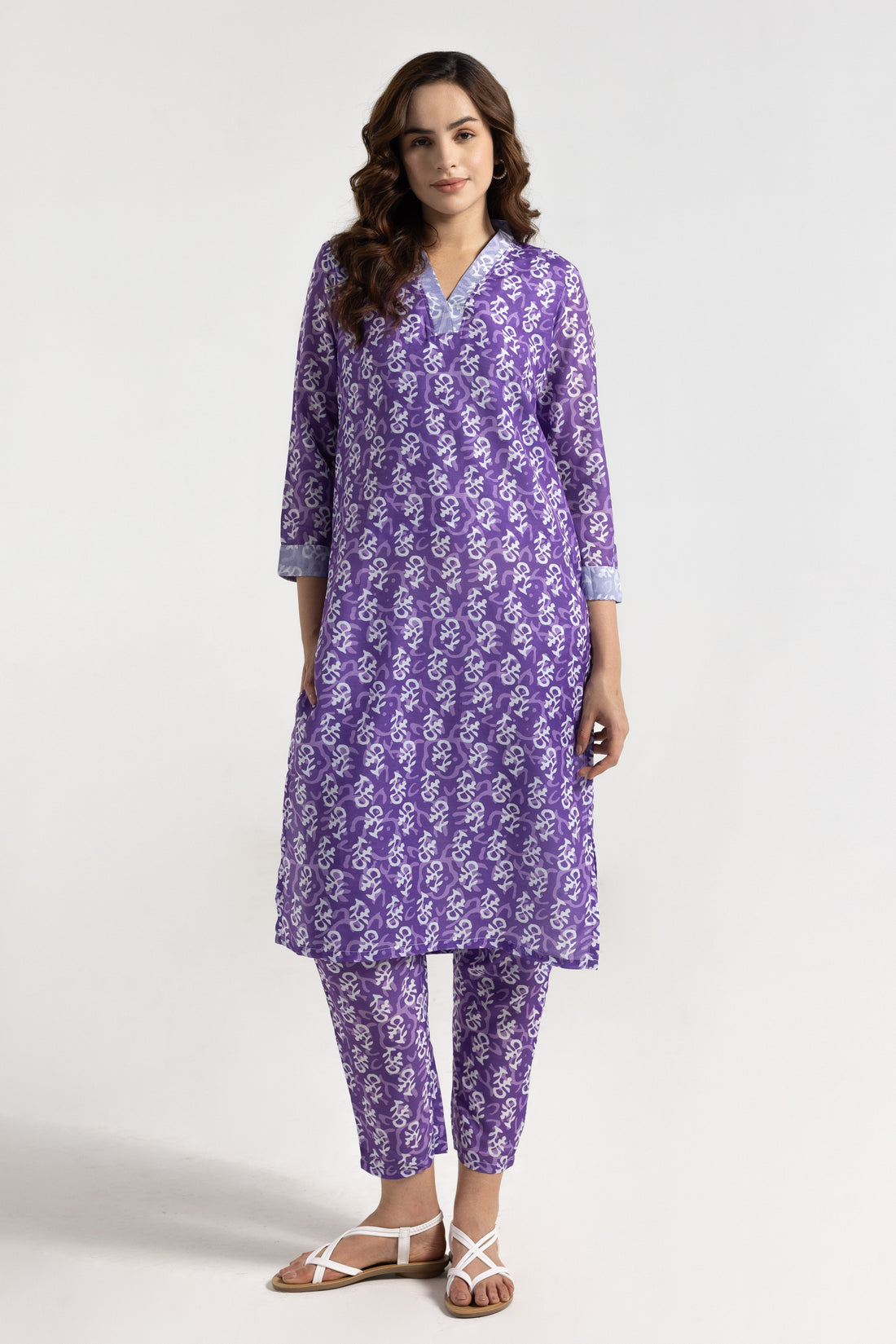 Purple Handblock Print Kurta Set