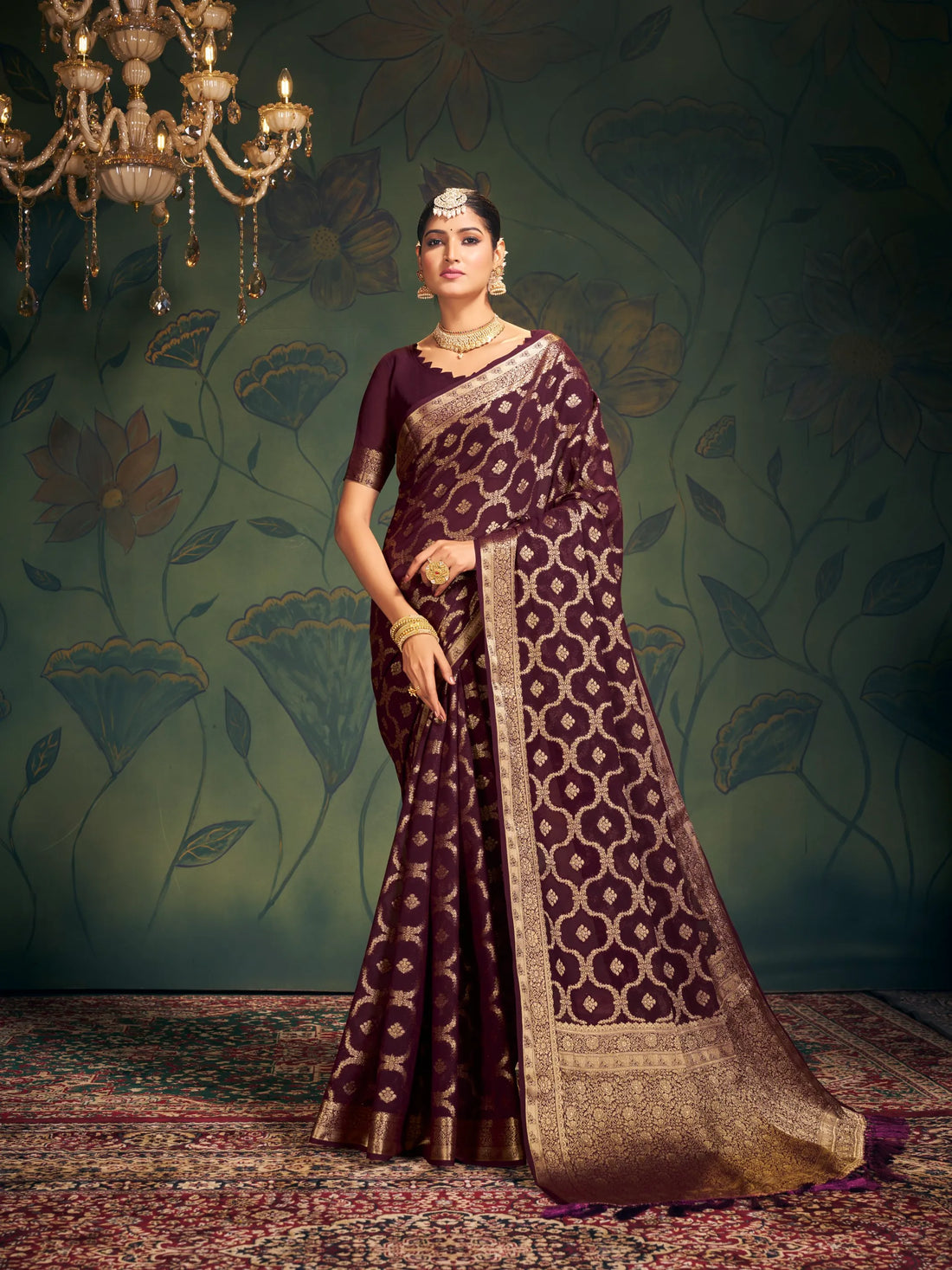 Rastogi wine pure georgette saree