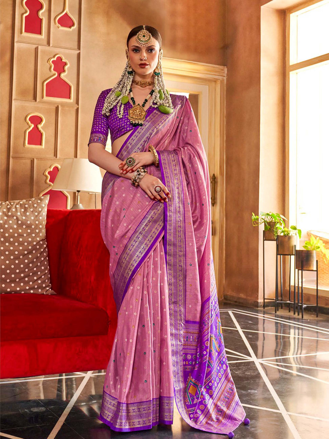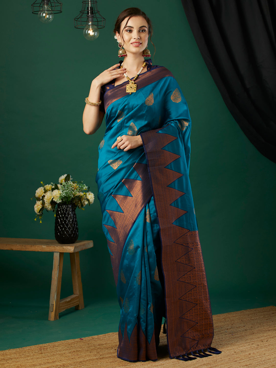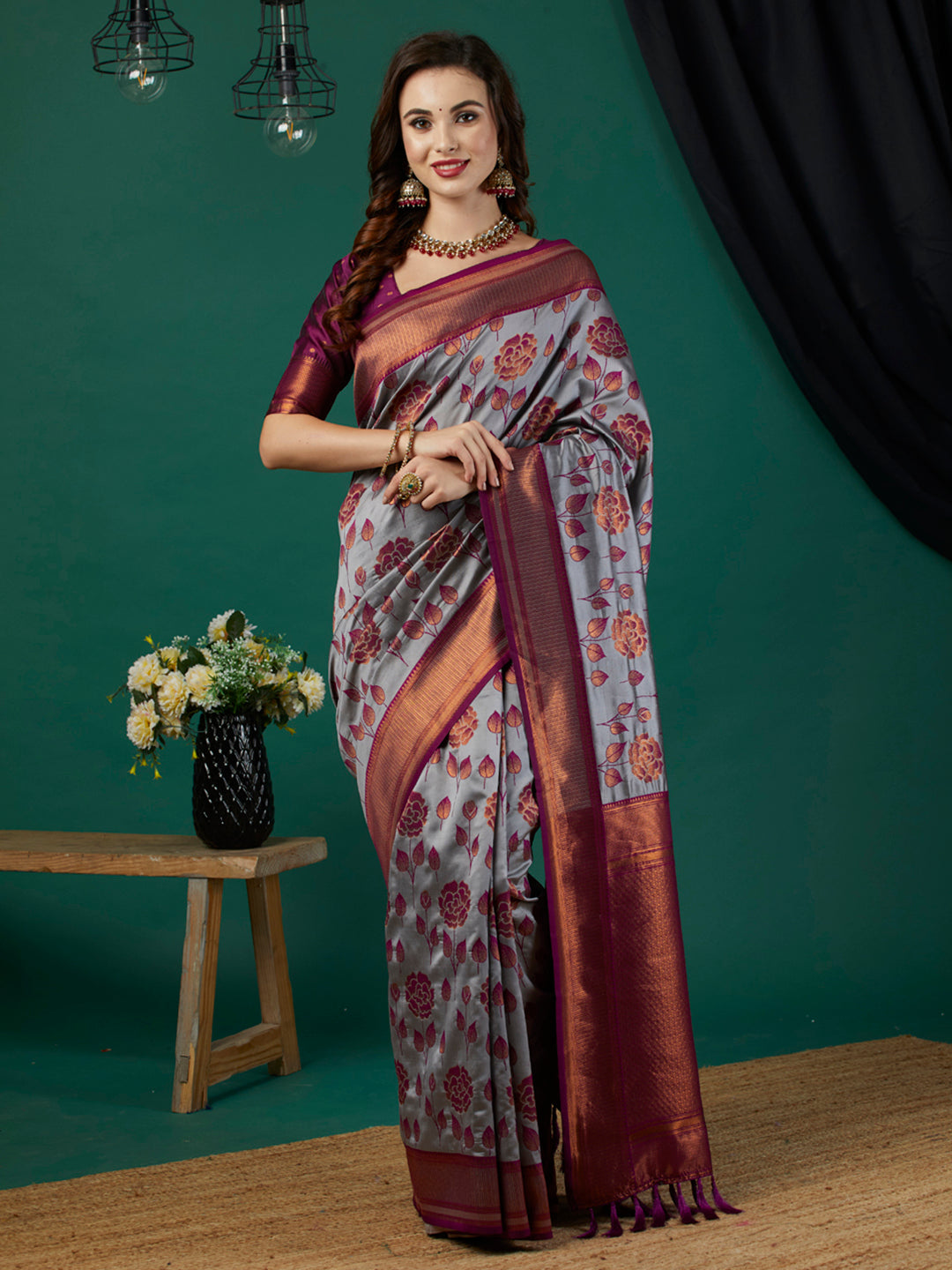 Channel timeless grace with our Regal Banarasi Silk Saree, adorned with intricate zari motifs and...