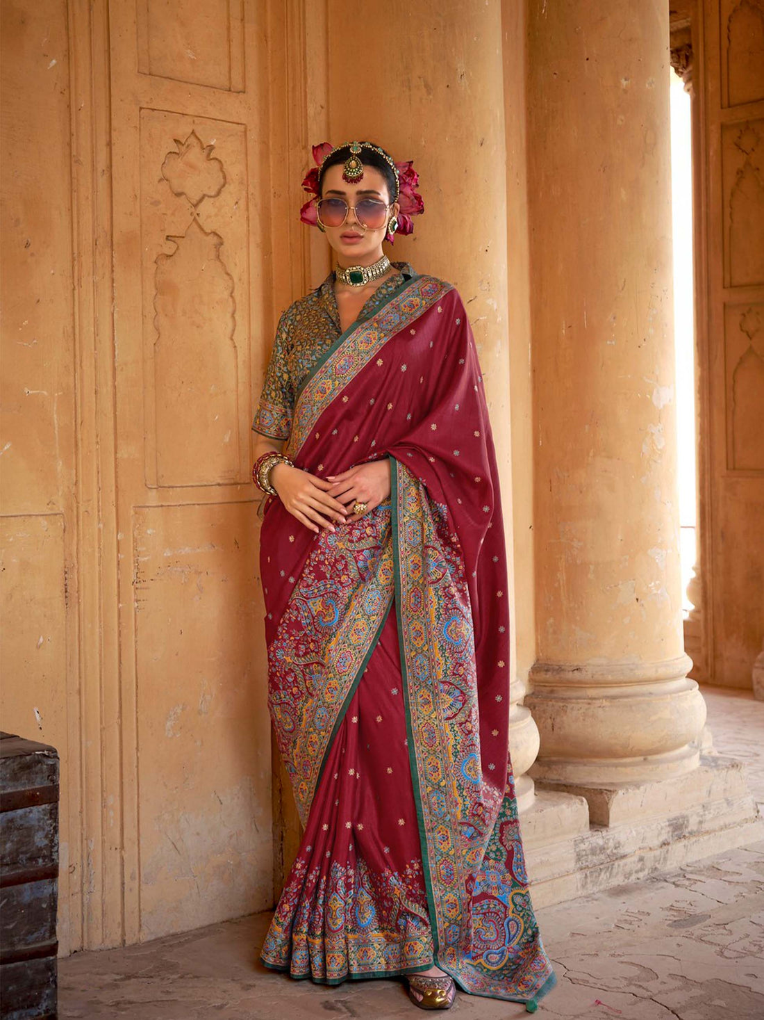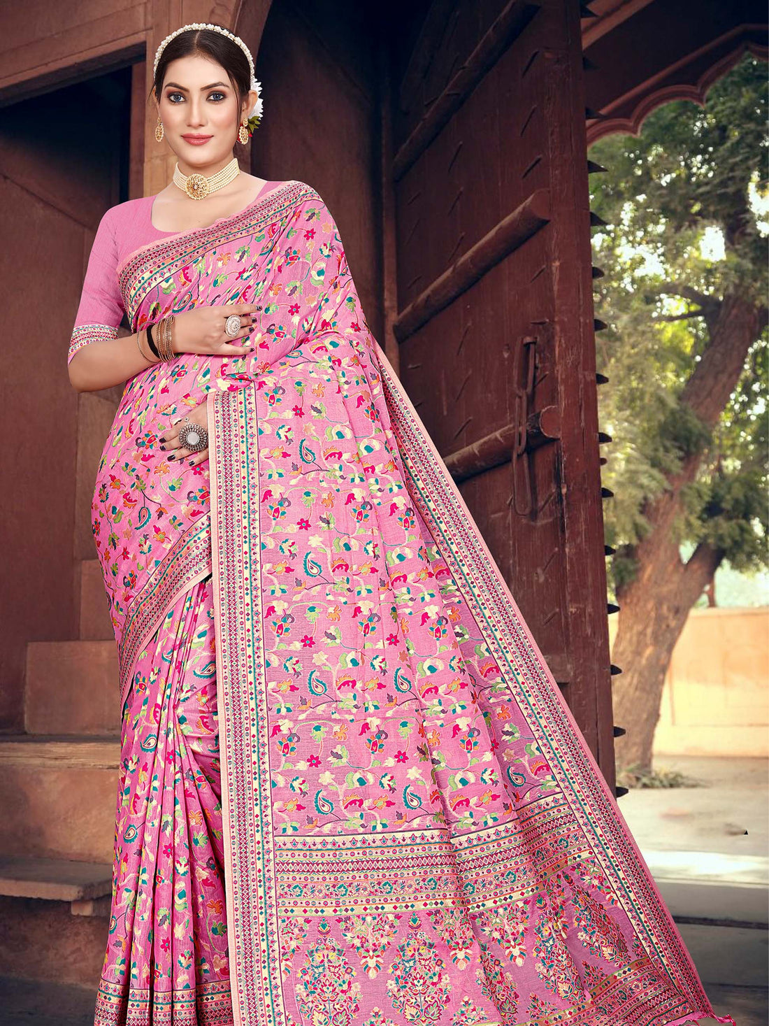 Fabric: Pashmina Silk Saree Length: 5.5 MBlouse Length : 0.8 MCare Instruction : Dry Clean OnlyManufactured / Packed by...
