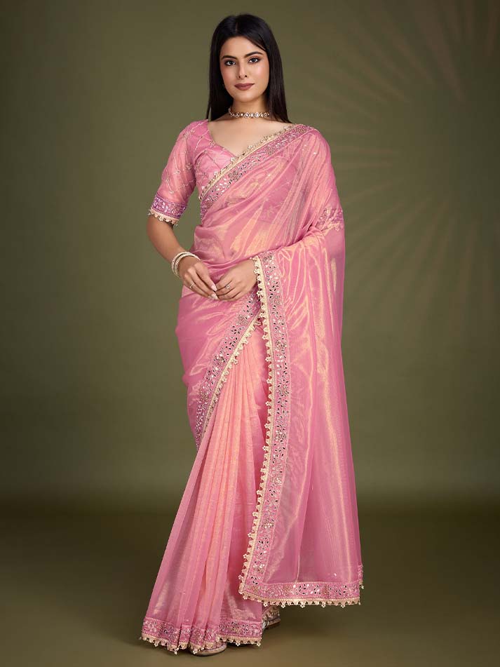 Fabric: Pure Georgette with silver Zari Color: Light pinkSaree Length: 5.5 MBlouse Length : 0.8 MCare Instruction : Dry Clean OnlyManufactured...