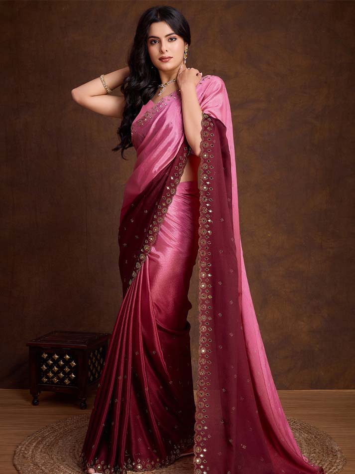 Fabric: Satin Chiffon Saree Length: 5.5 MBlouse Length : 0.8 MCare Instruction : Dry Clean OnlyManufactured / Packed by...