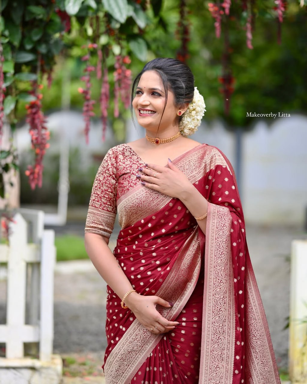 Fabric: Pure Georgette with Golden Zari Color: Maroon Saree Length: 5.5 MBlouse Length : 0.8 MCare Instruction : Dry Clean OnlyManufactured /...