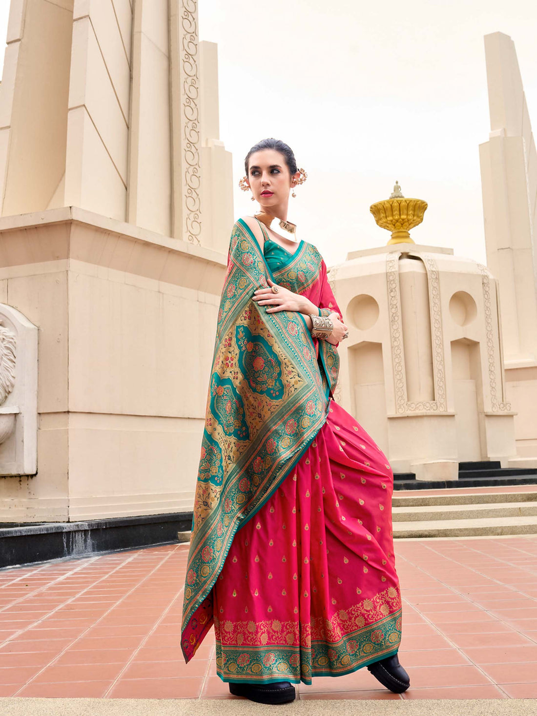 Channel timeless grace with our Regal Banarasi Silk Saree, adorned with intricate zari motifs and...