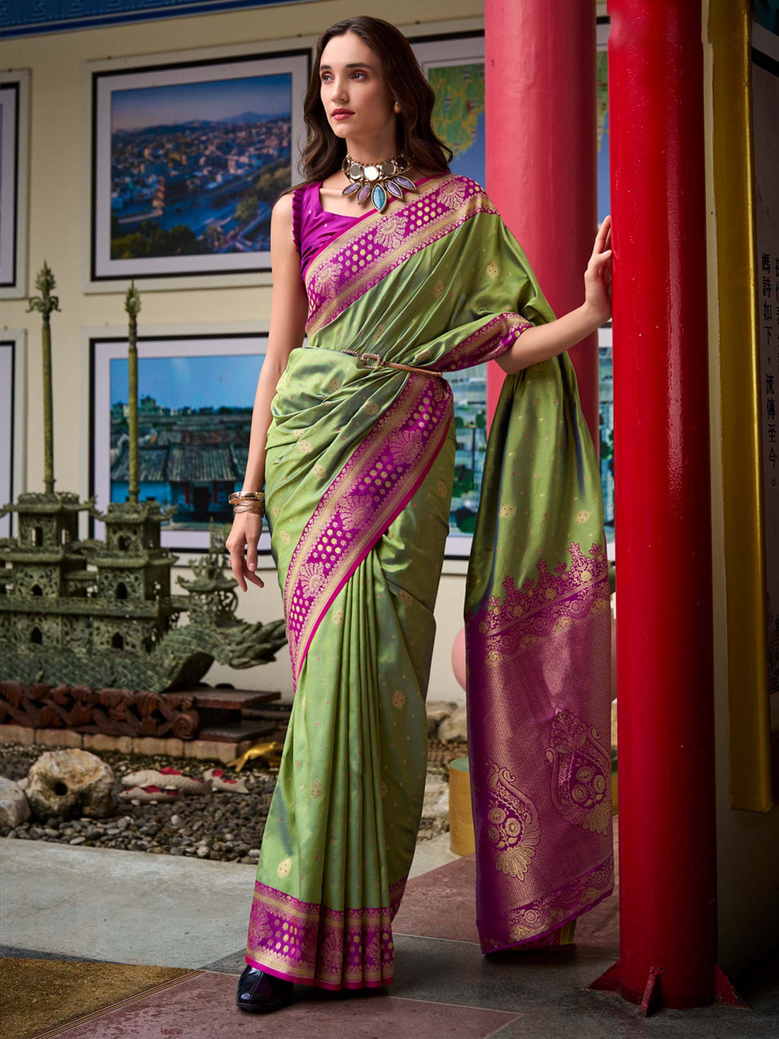 Fabric: Banarasi Silk Saree Length: 5.5 MBlouse Length : 0.8 MCare Instruction : Dry Clean OnlyManufactured / Packed by : FlouriousInclusive...