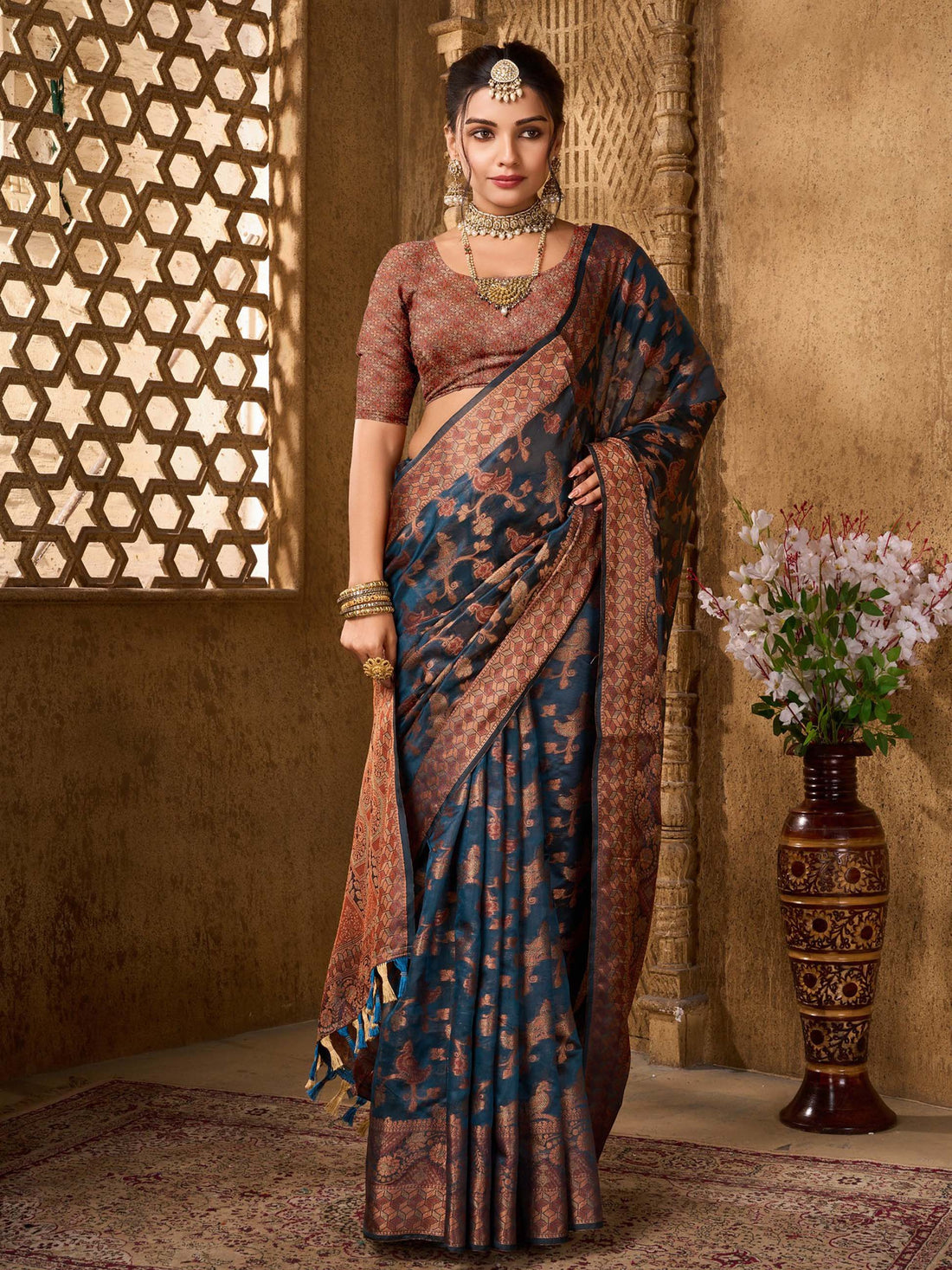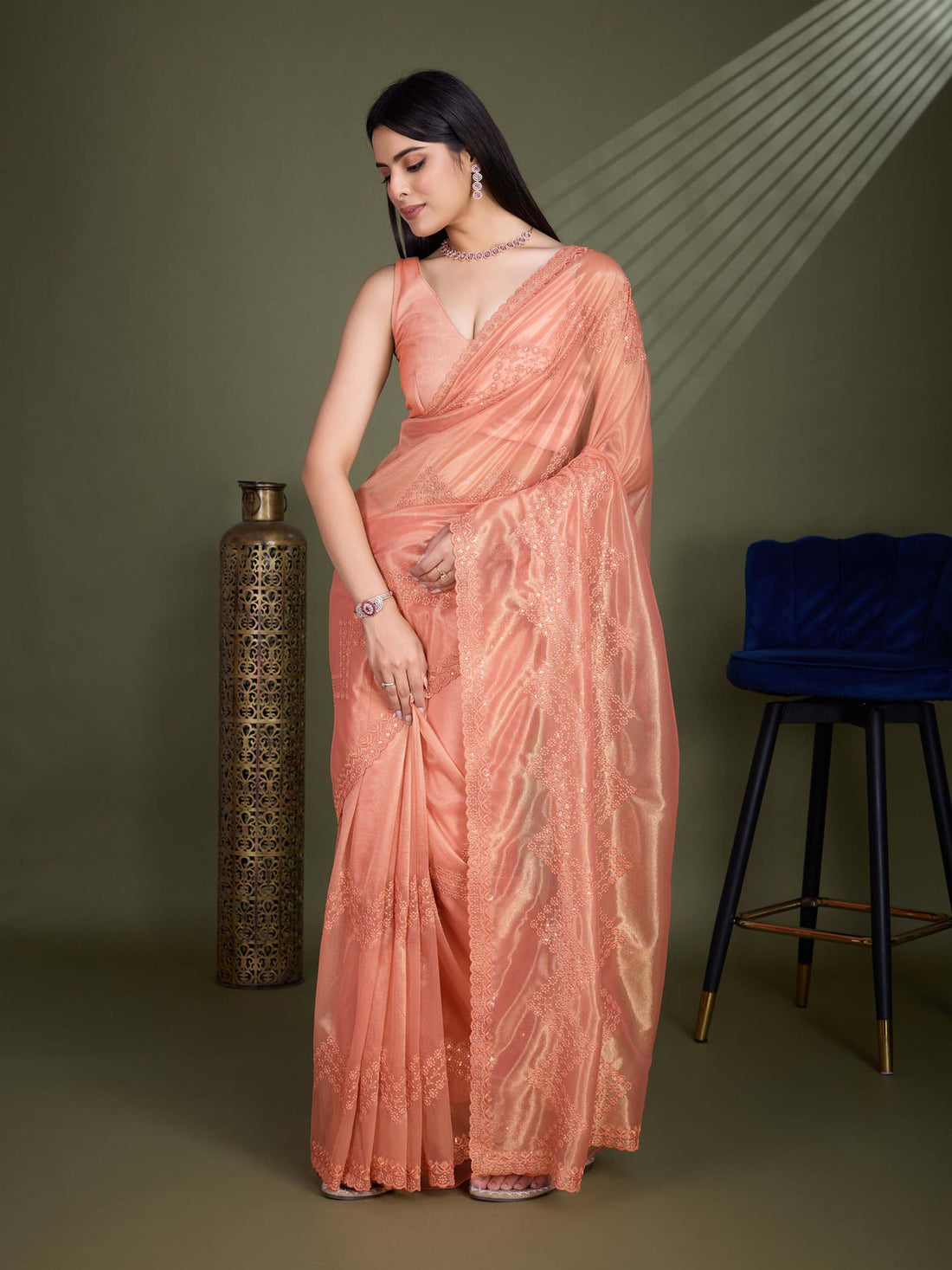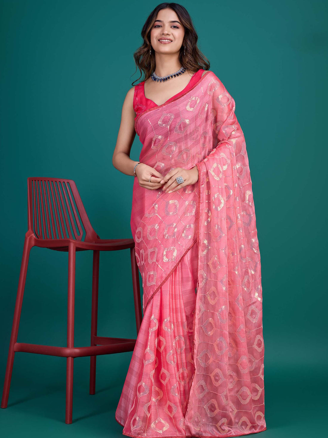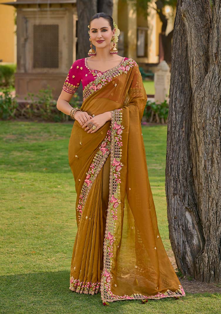 Elevate your style with the Organza Saree - a radiant expression of femininity, artistry, and...