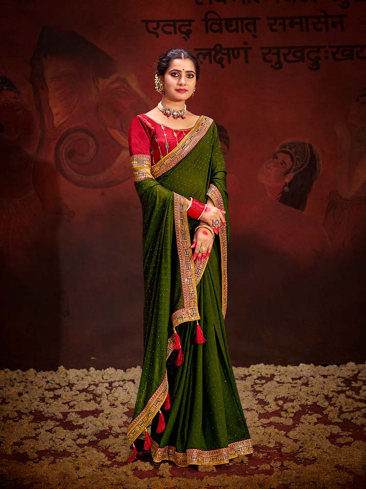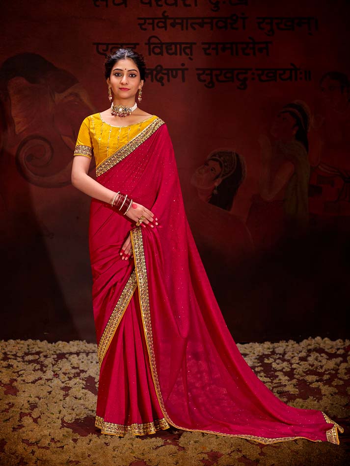 Our sarees are created using a combination of modern weaving technologies (like jacquard, air-jet, and rapier looms) and traditional craftsmanship. Fabrics are processed, finished, and often embellished in-house to ensure consistent quality.