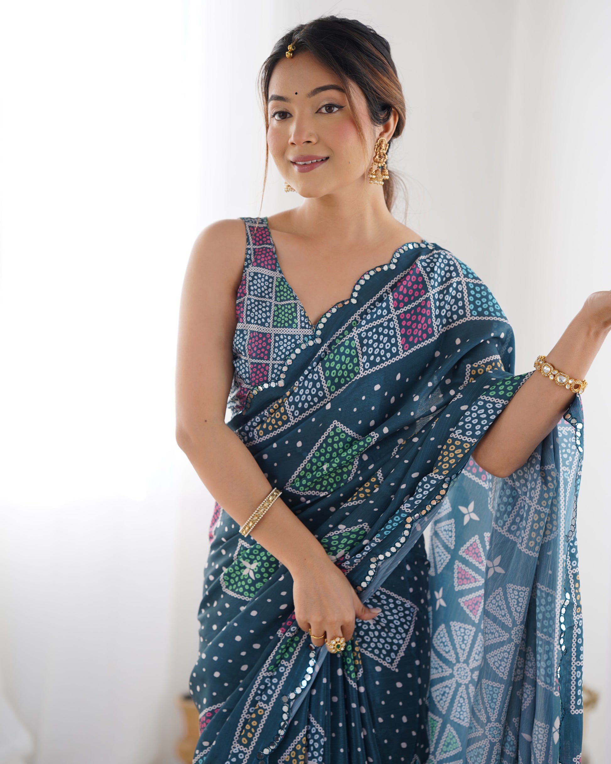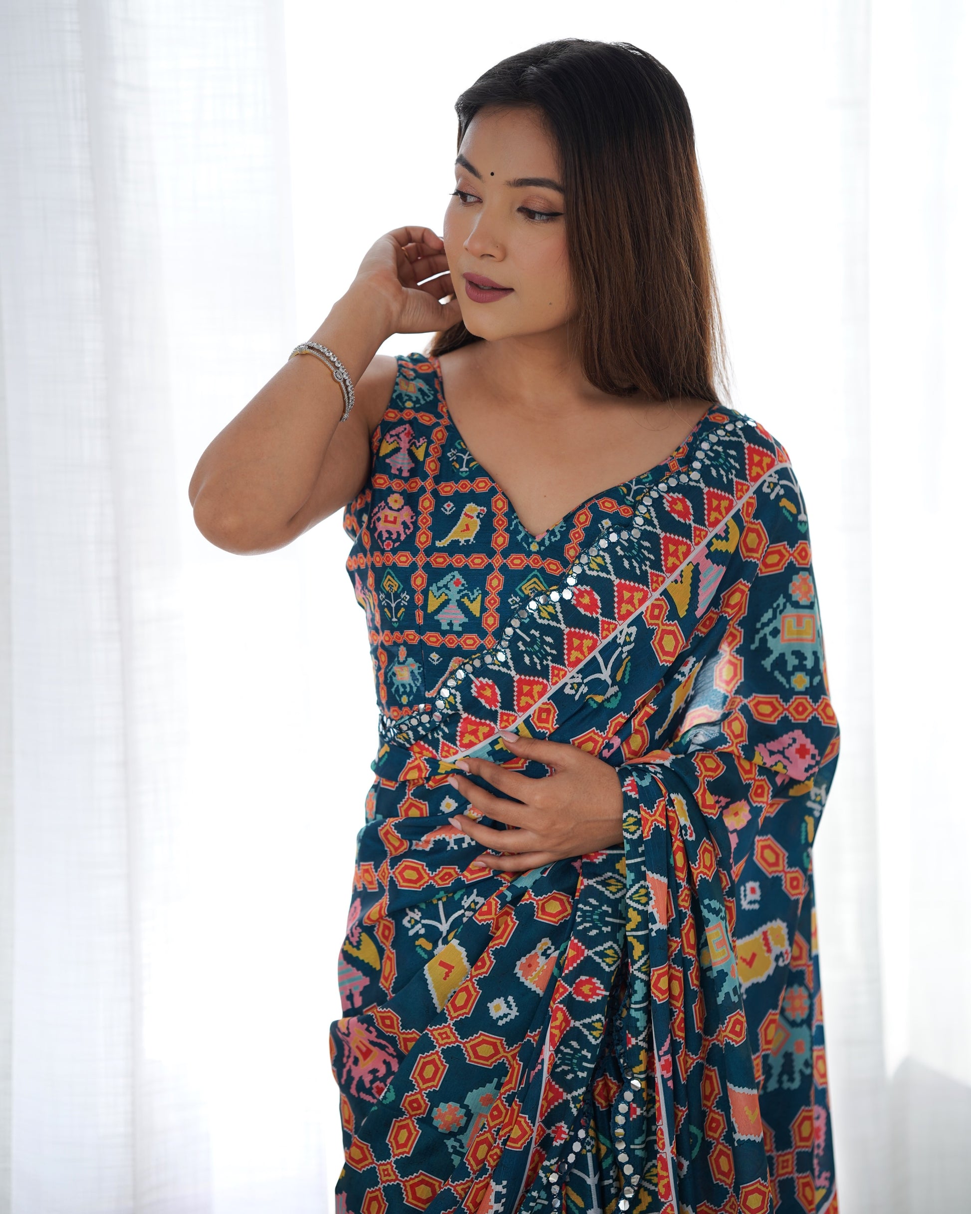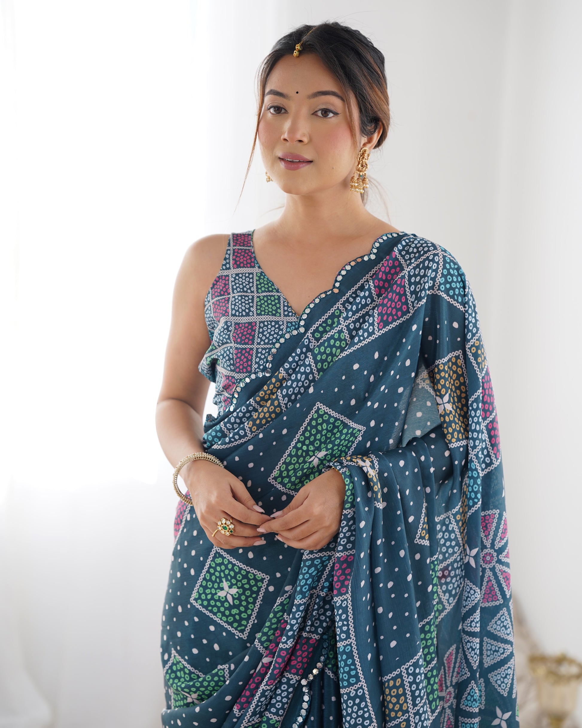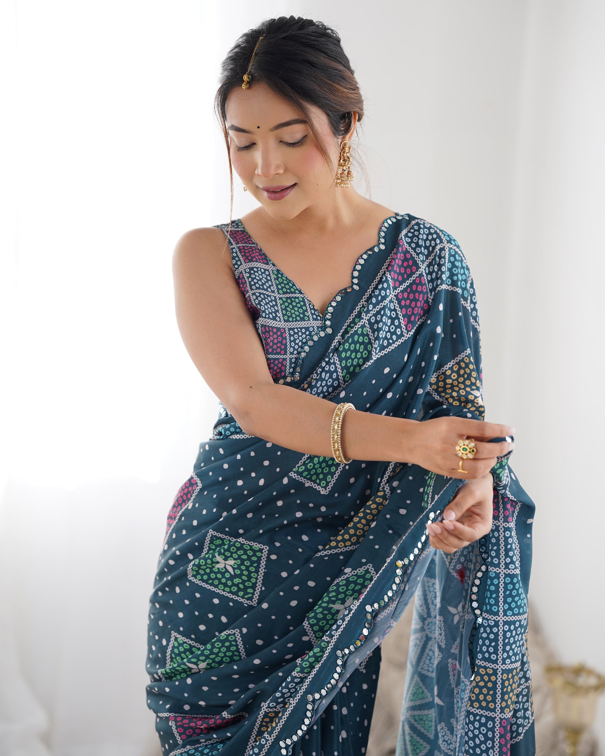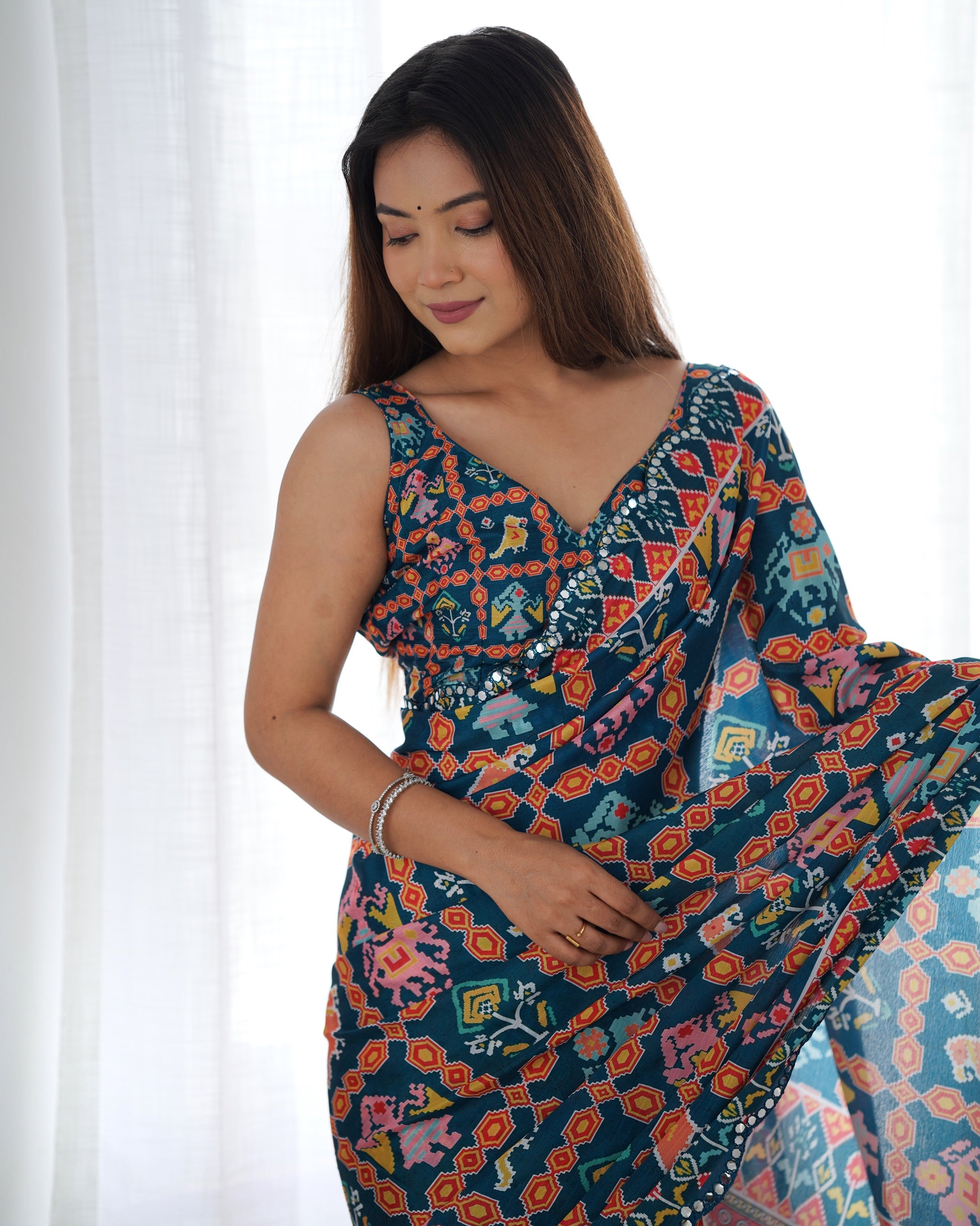 Work :- Print Work with Beautiful Kutchi Work Mirror Lace Border
