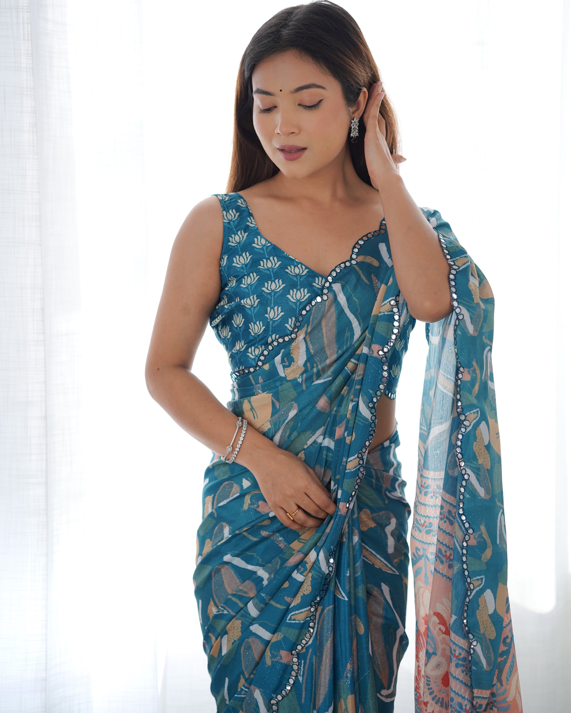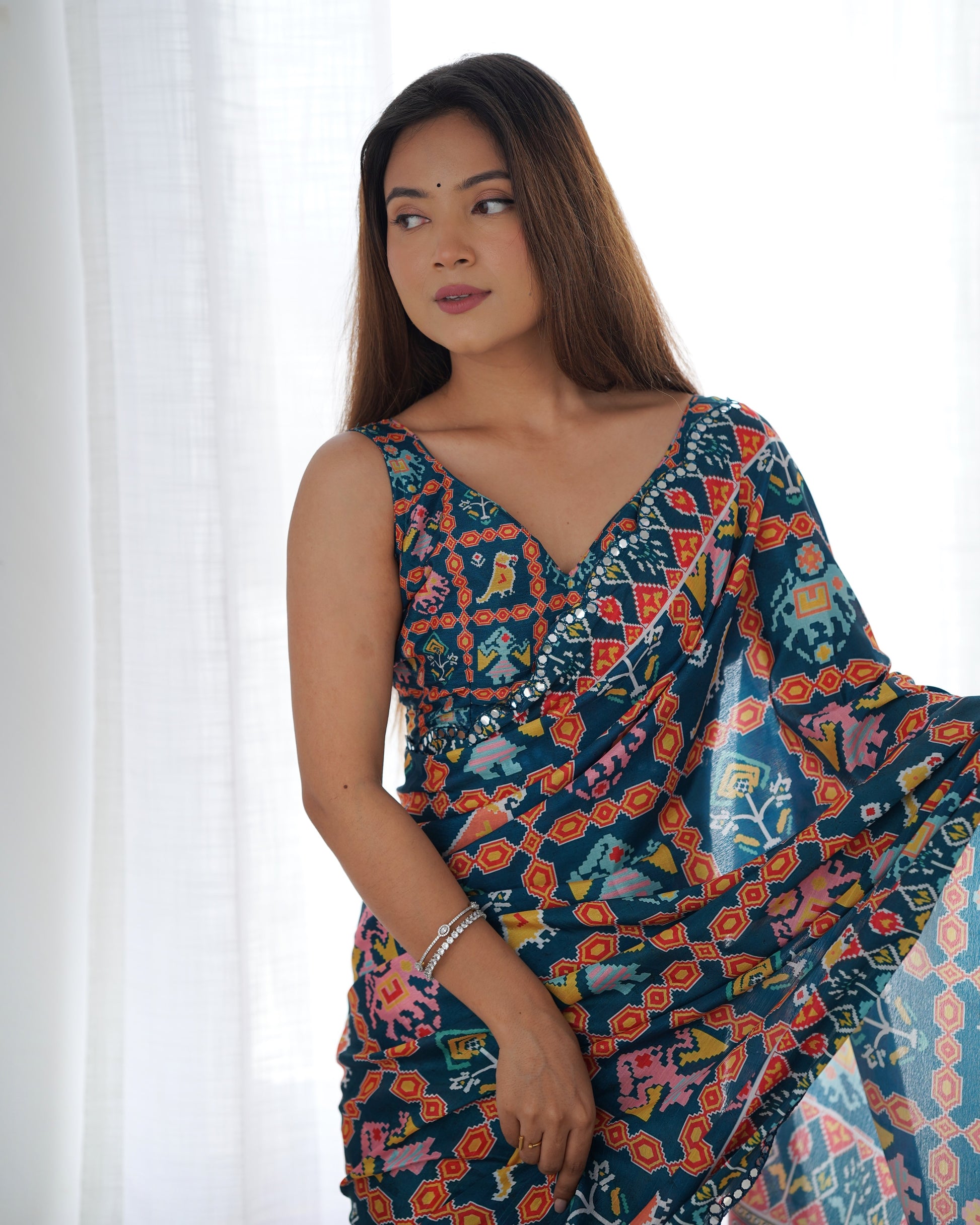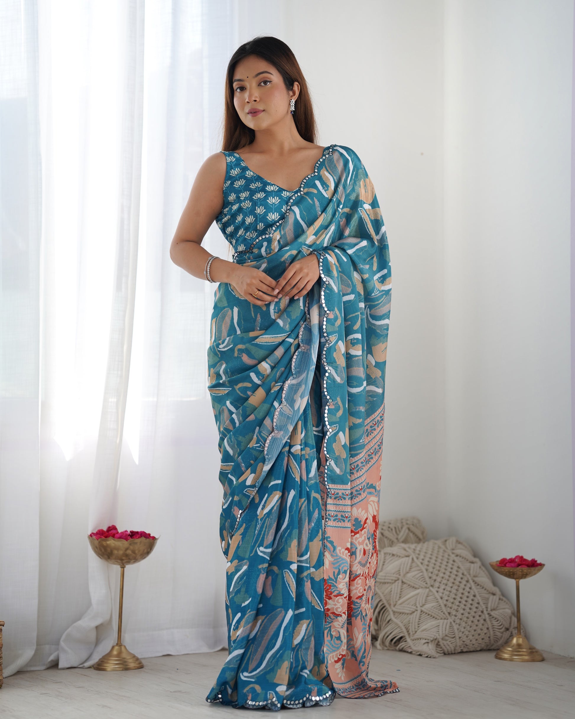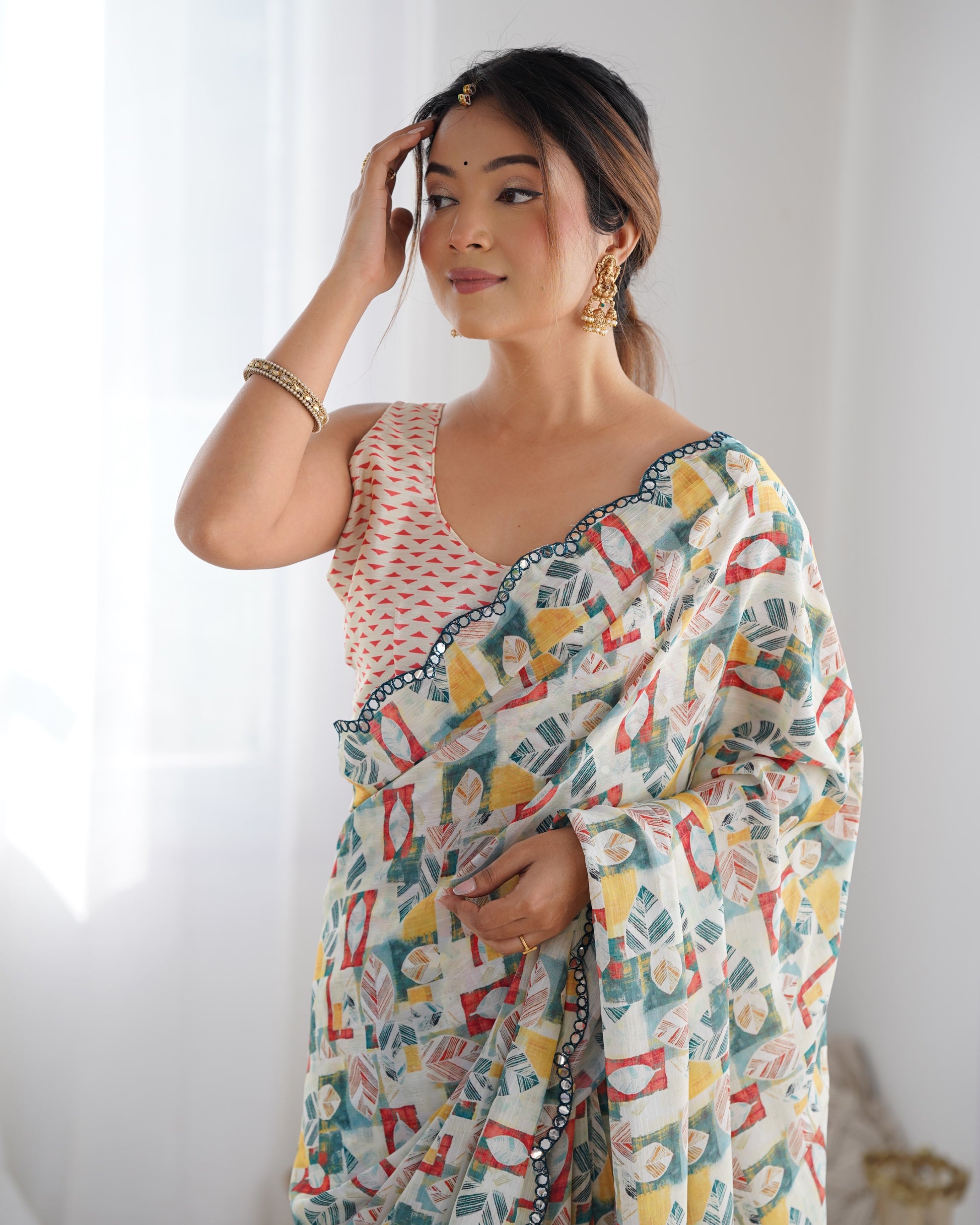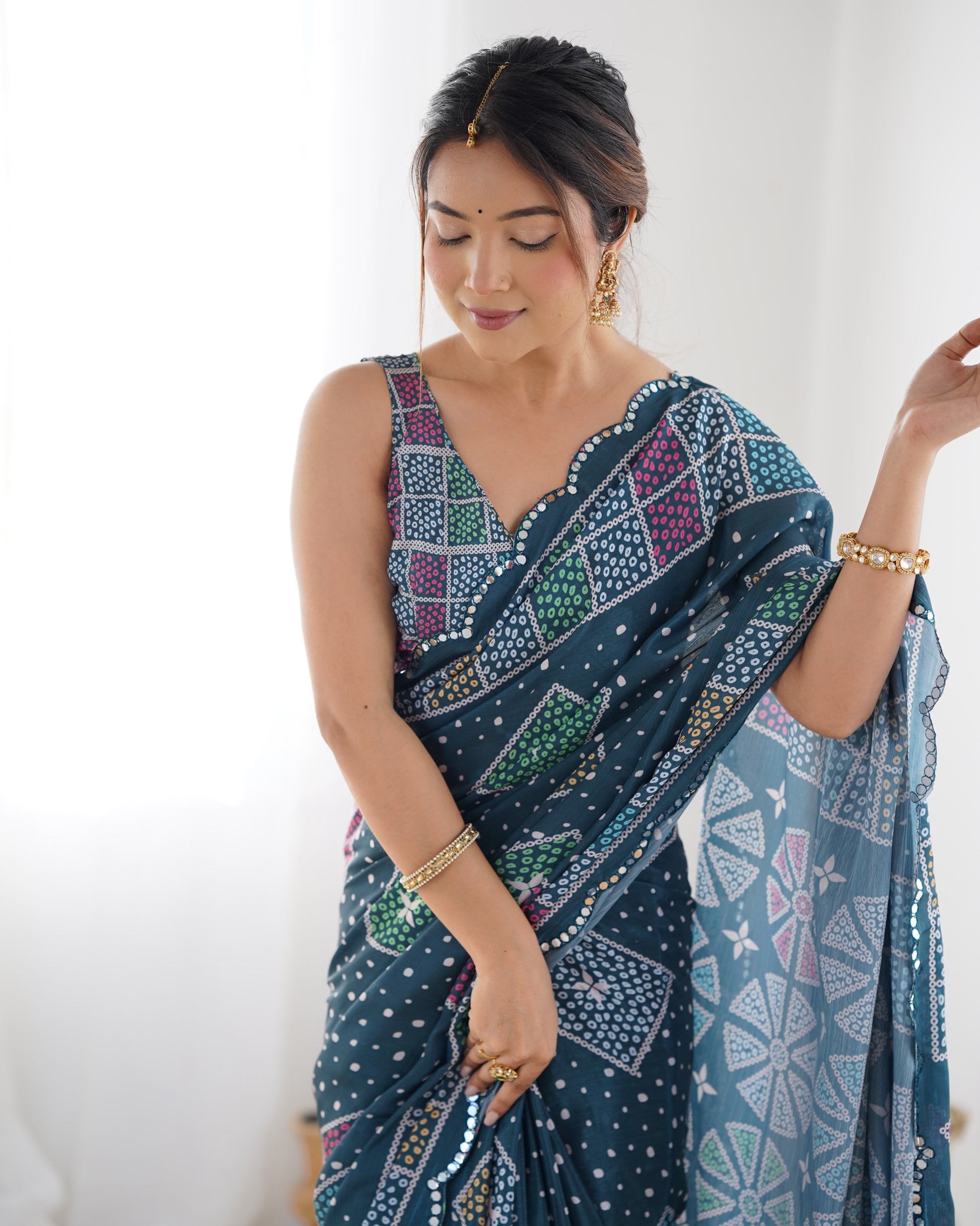 Work :- Print Work with Beautiful Kutchi Work Mirror Lace Border