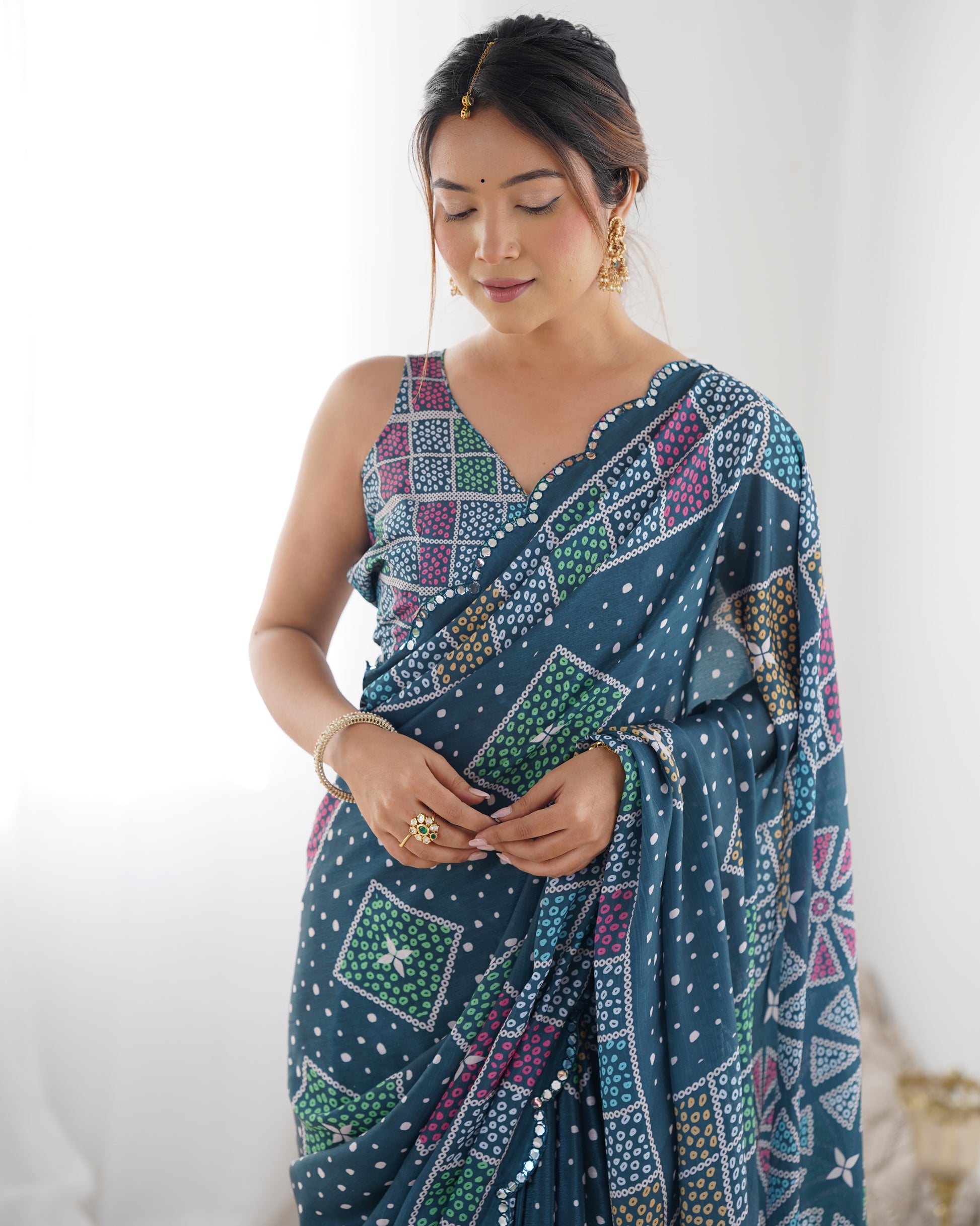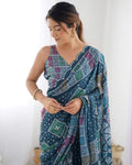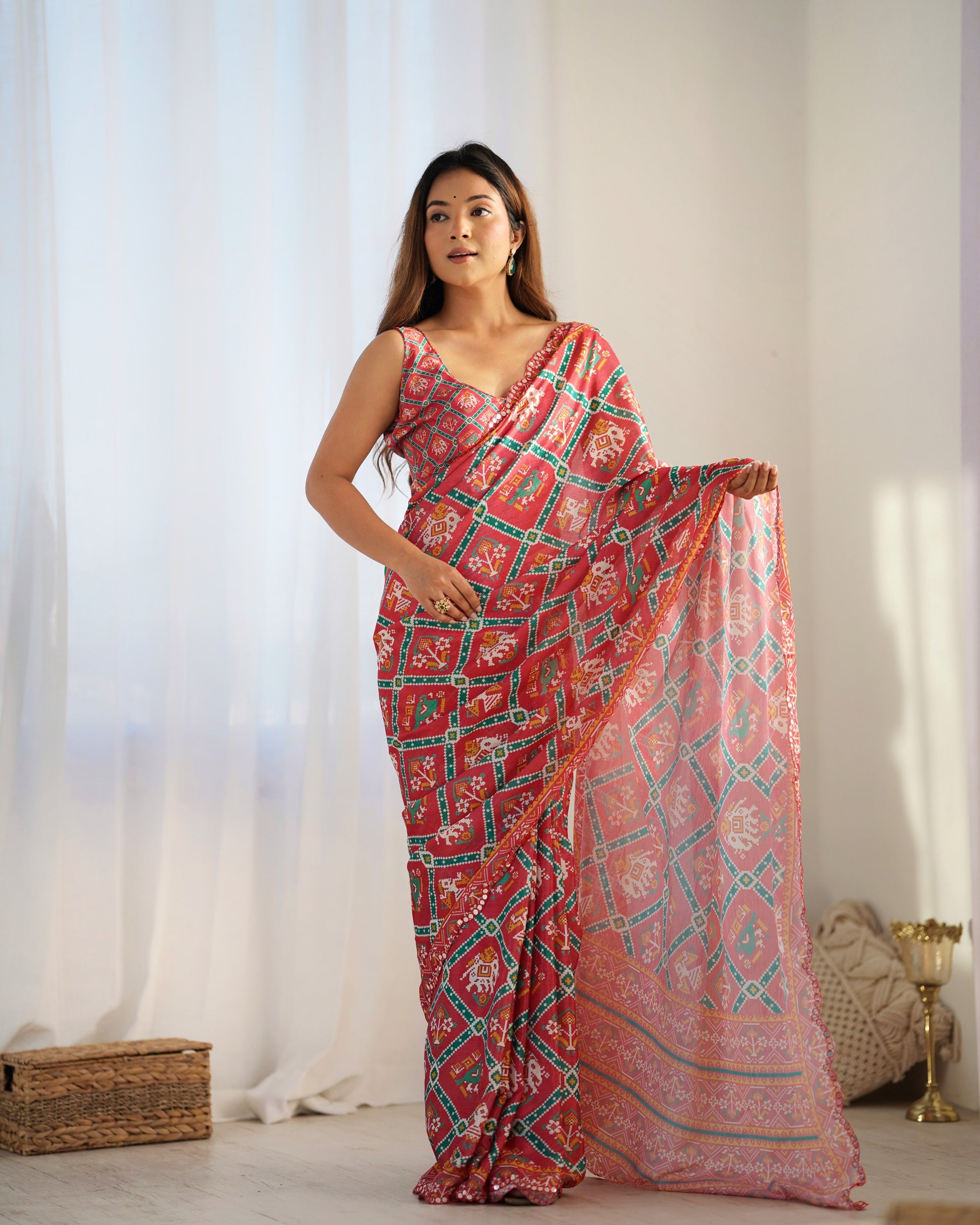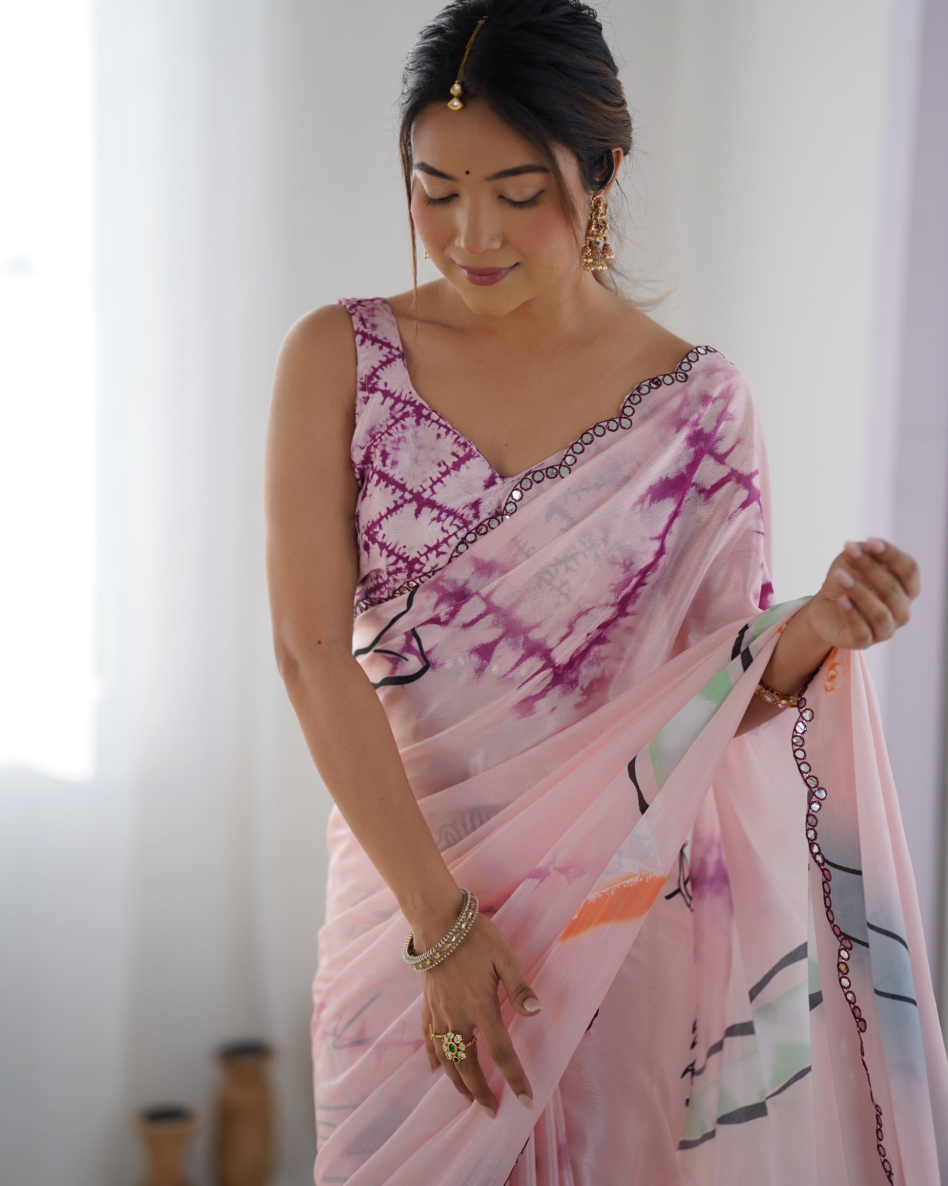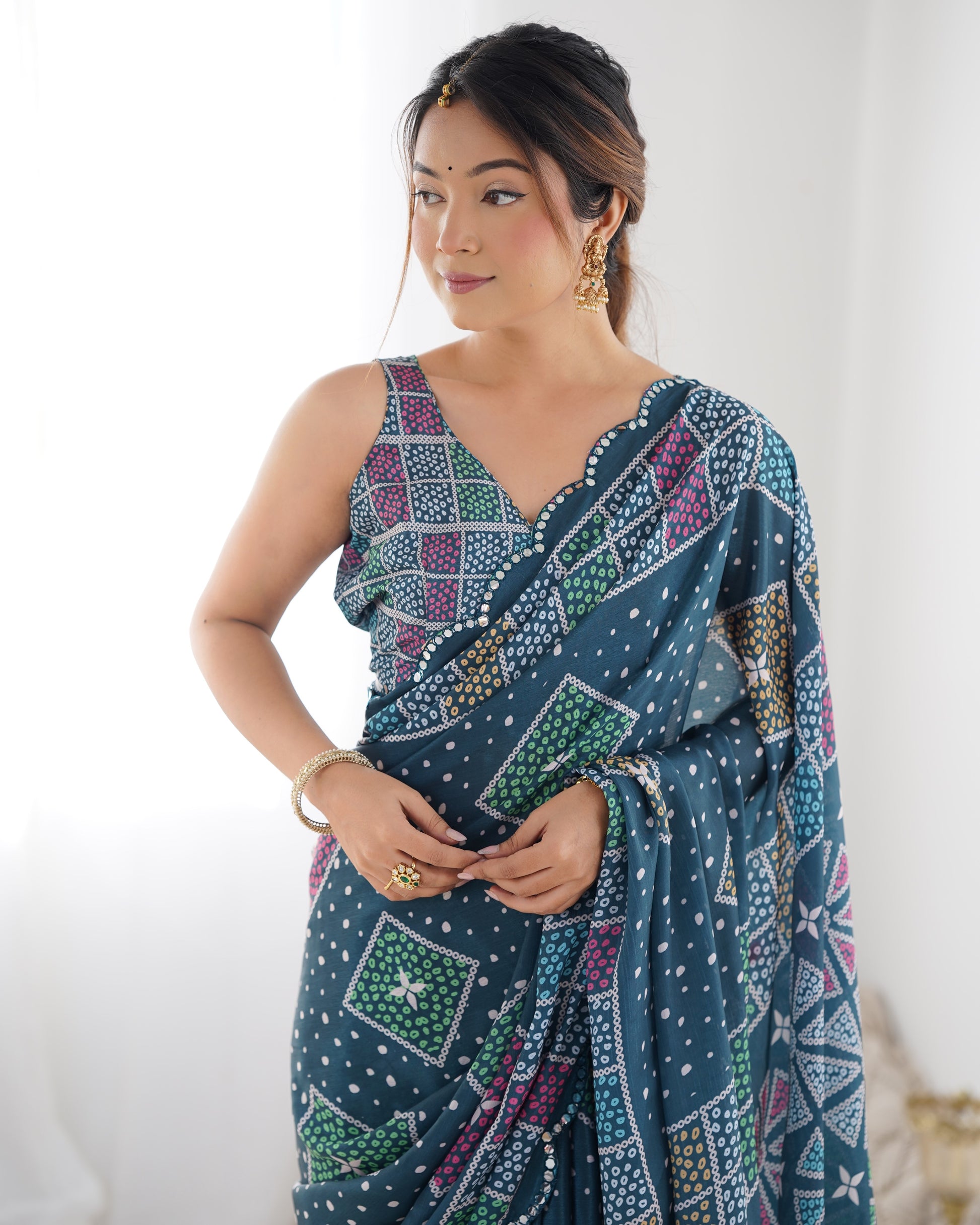 Work :- Print Work with Beautiful Kutchi Work Mirror Lace Border