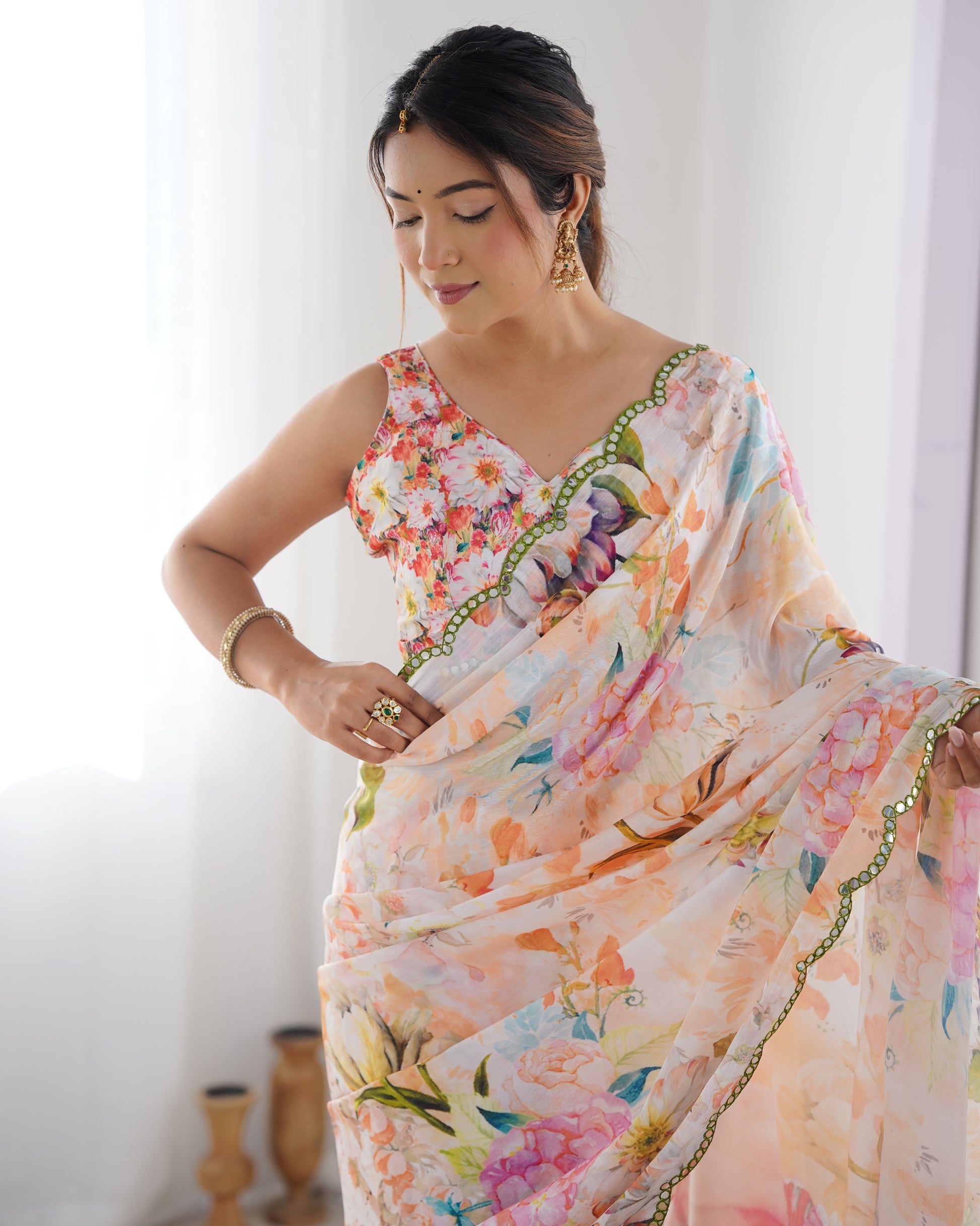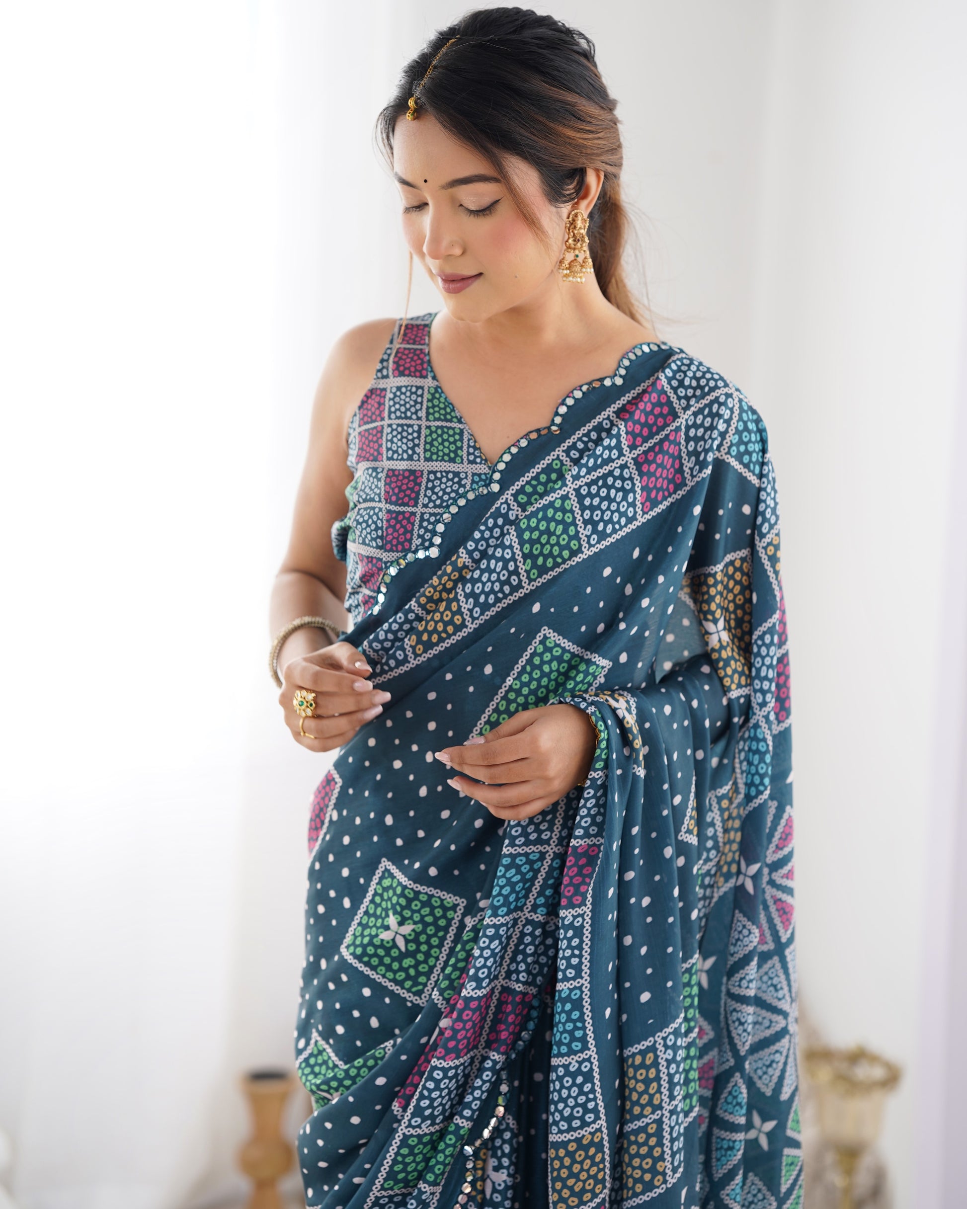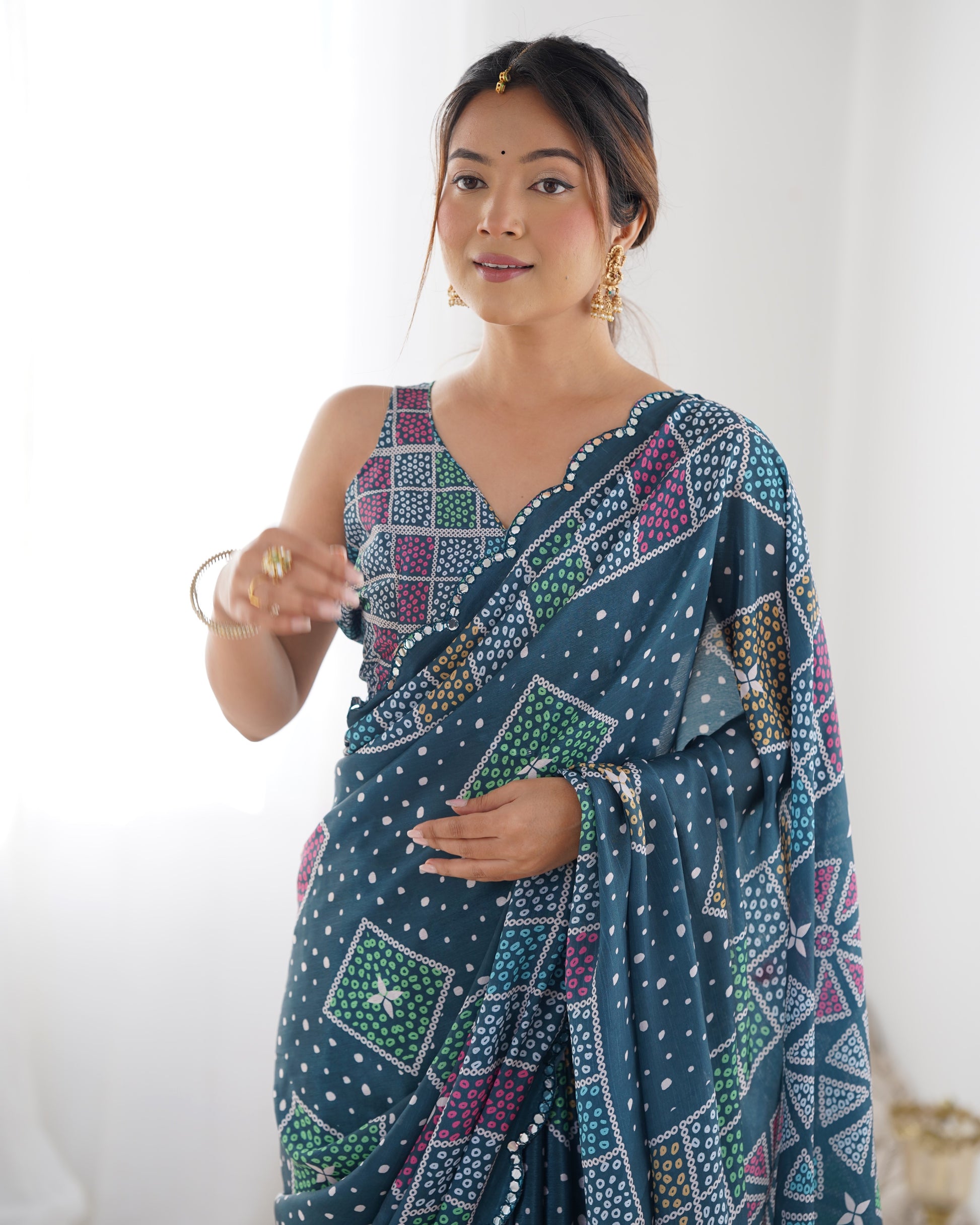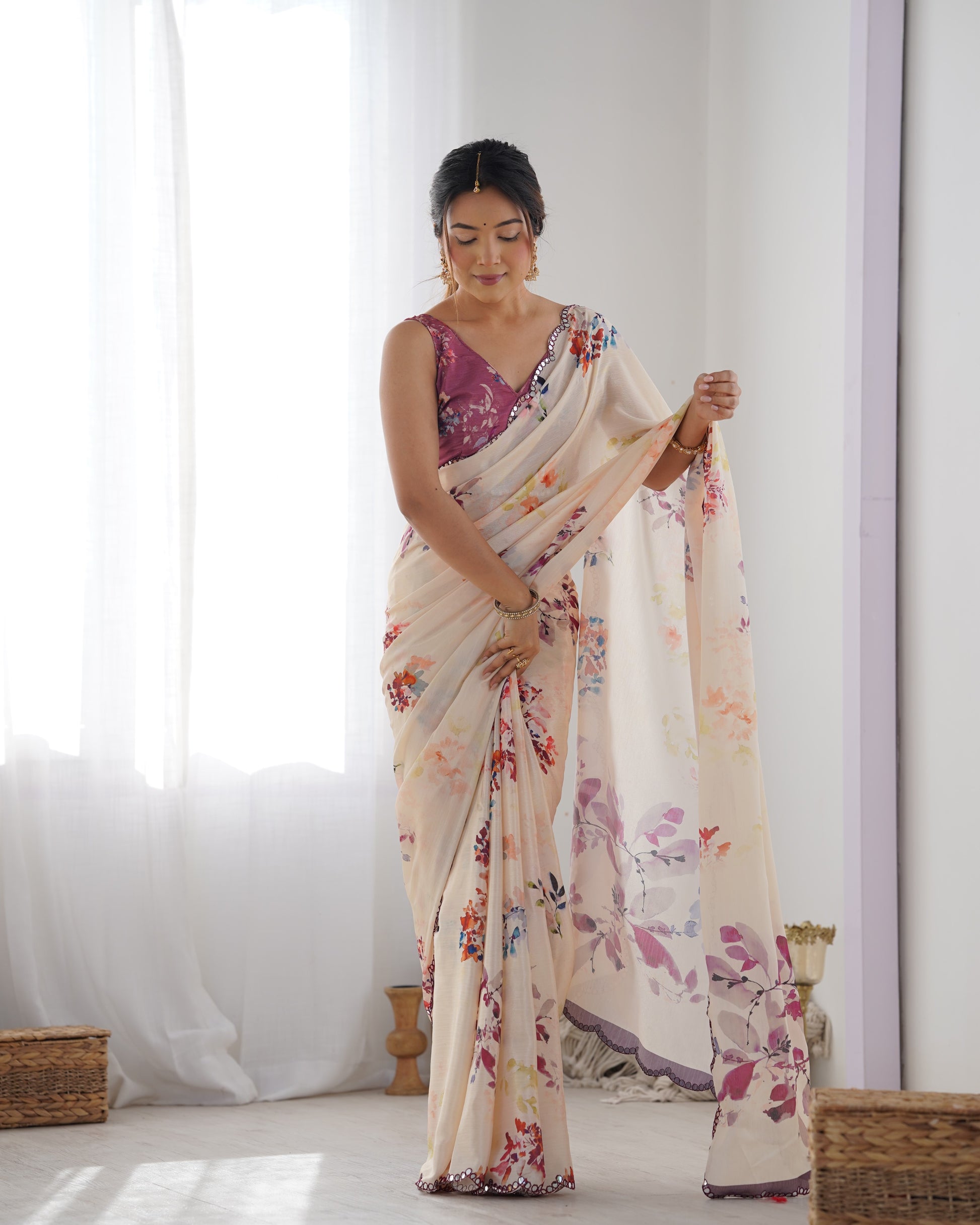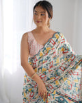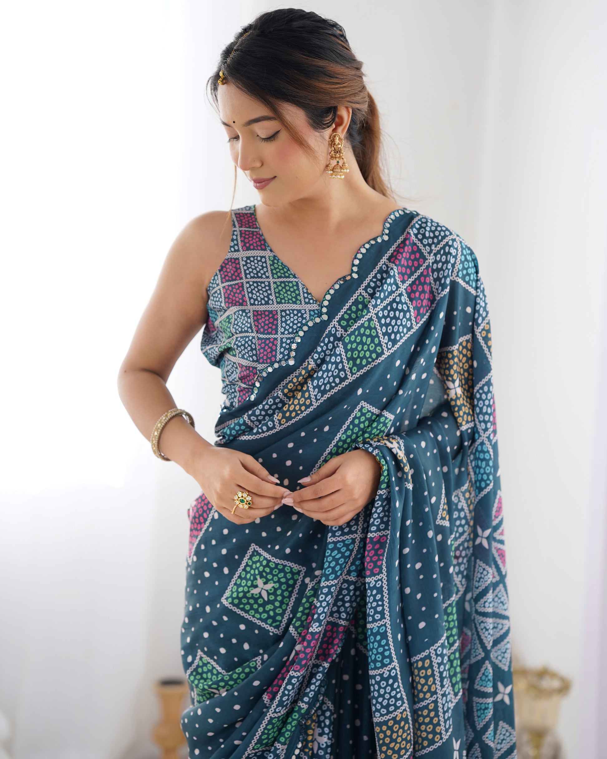 Work :- Print Work with Beautiful Kutchi Work Mirror Lace Border