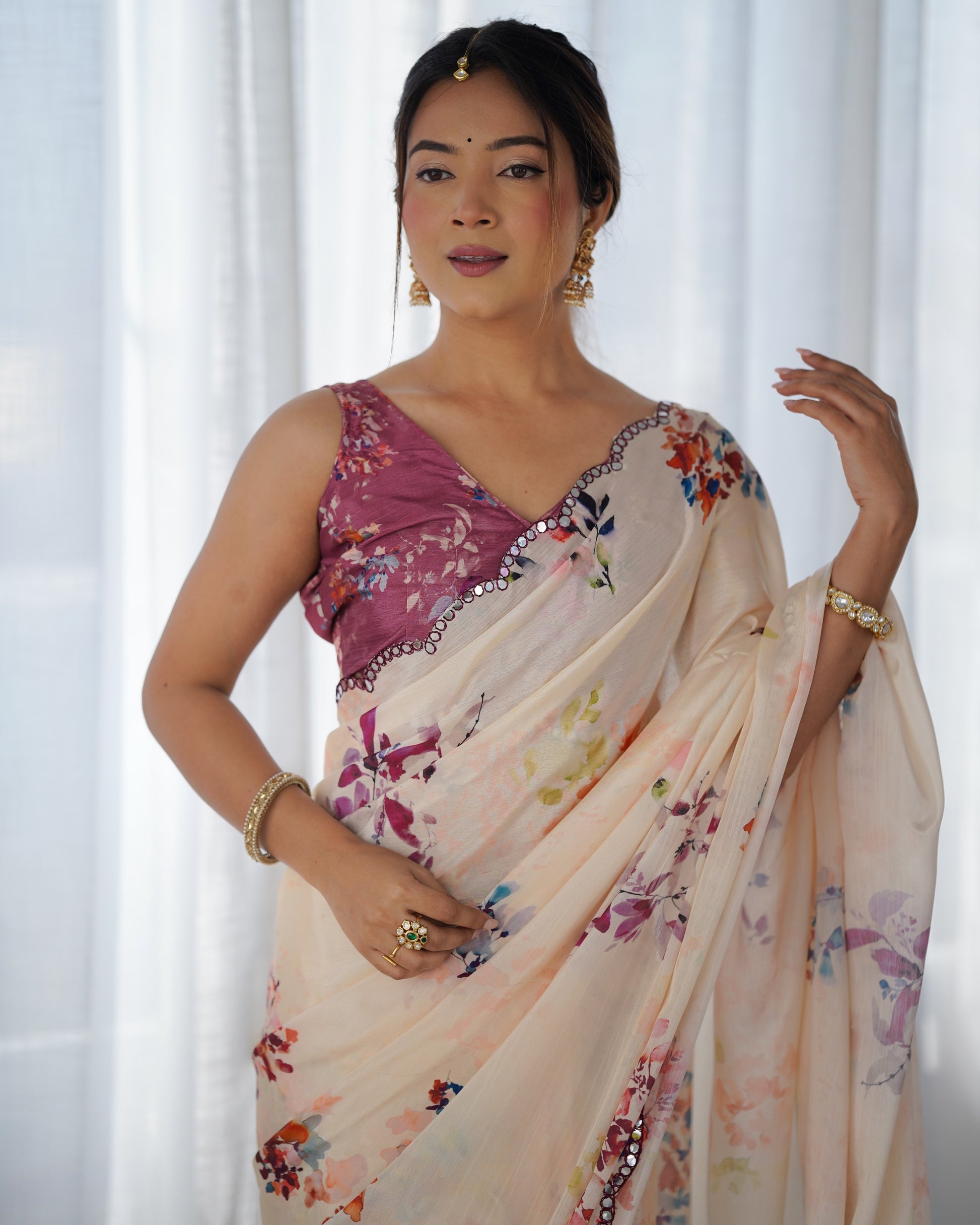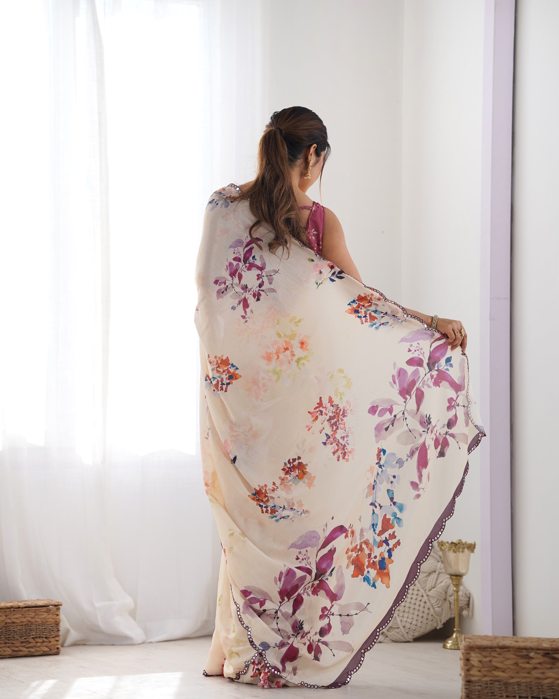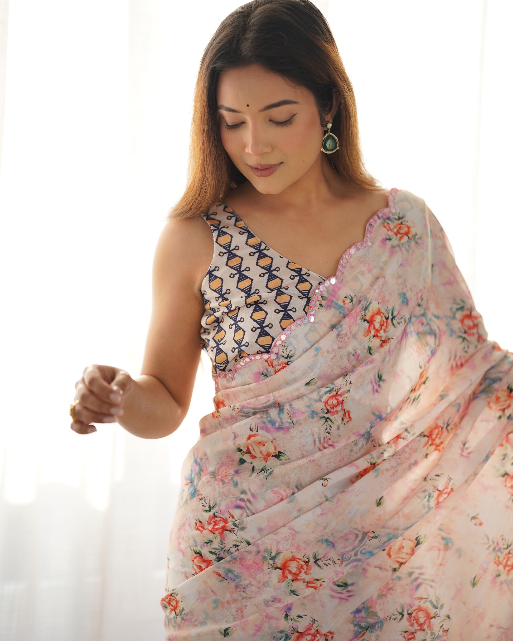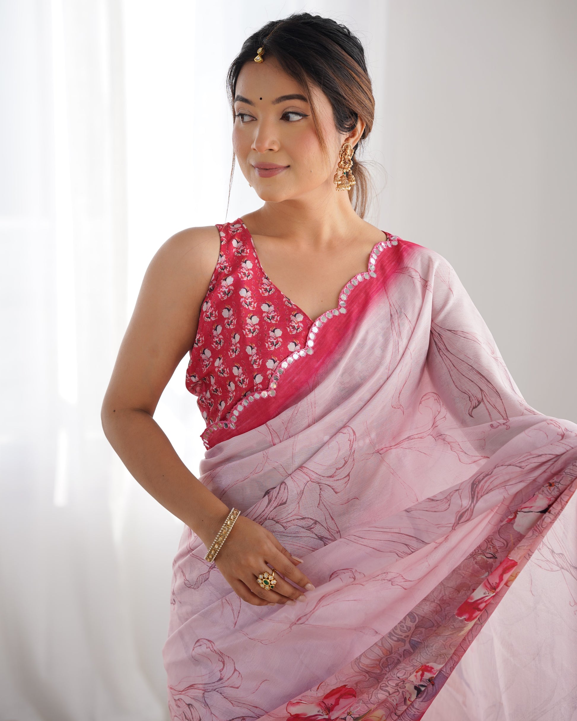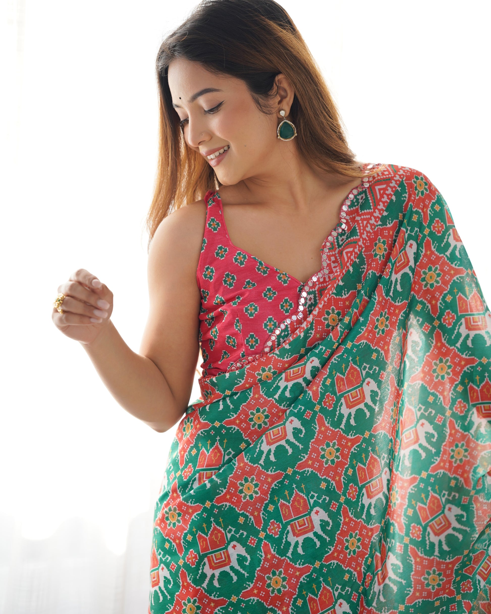 Work :- Print Work with Beautiful Kutchi Work Mirror Lace Border