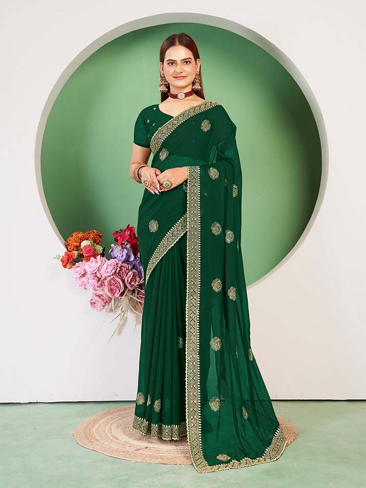 Our sarees are created using a combination of modern weaving technologies (like jacquard, air-jet, and rapier looms) and traditional craftsmanship. Fabrics are processed, finished, and often embellished in-house to ensure consistent quality.