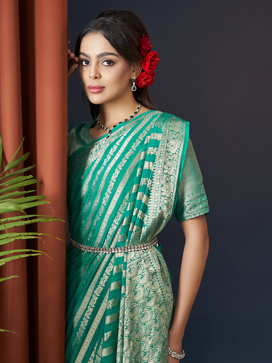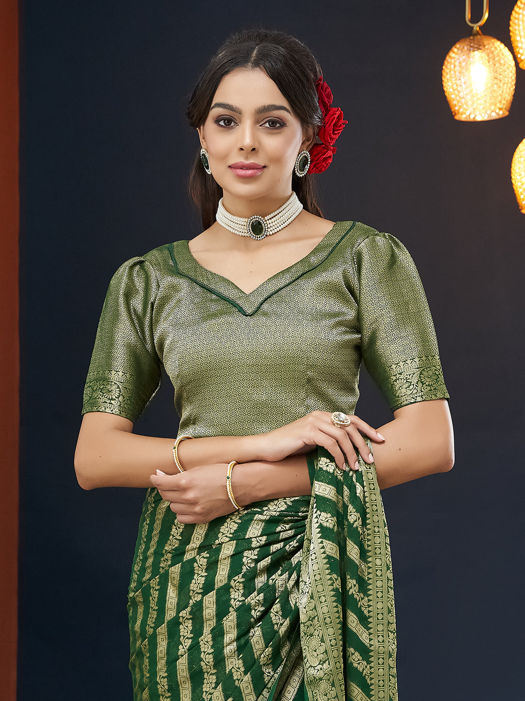NOTE - The blouse worn by the model is for styling purpose only.