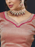 The saree comes with an unstitched blouse.