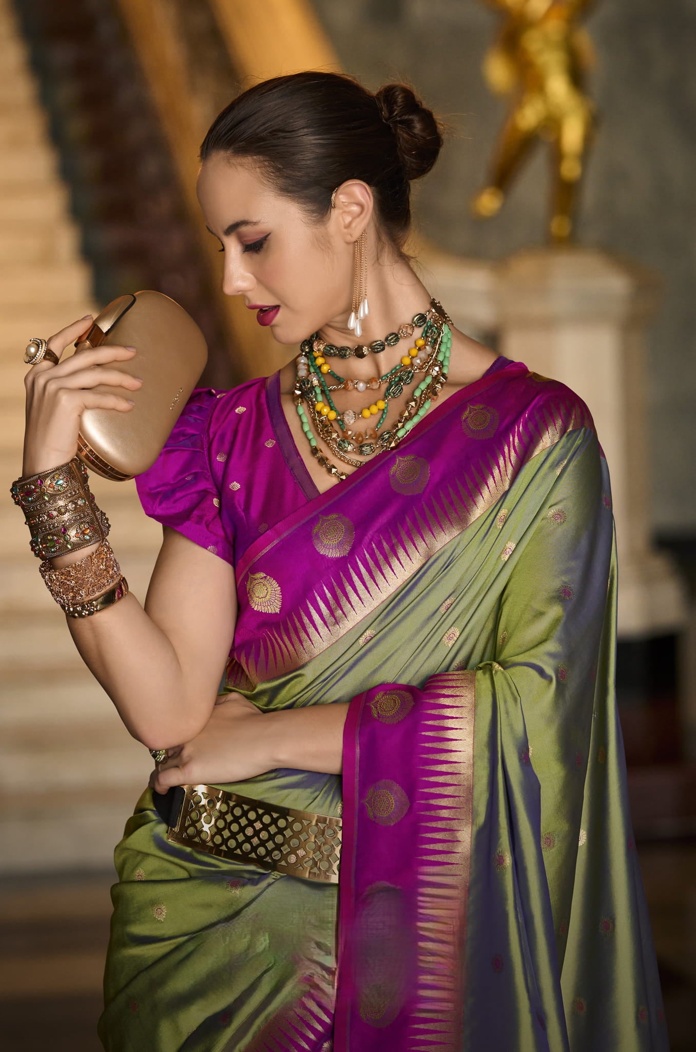 Work: All-over Zari Motifs with Paisley Design on Pallu