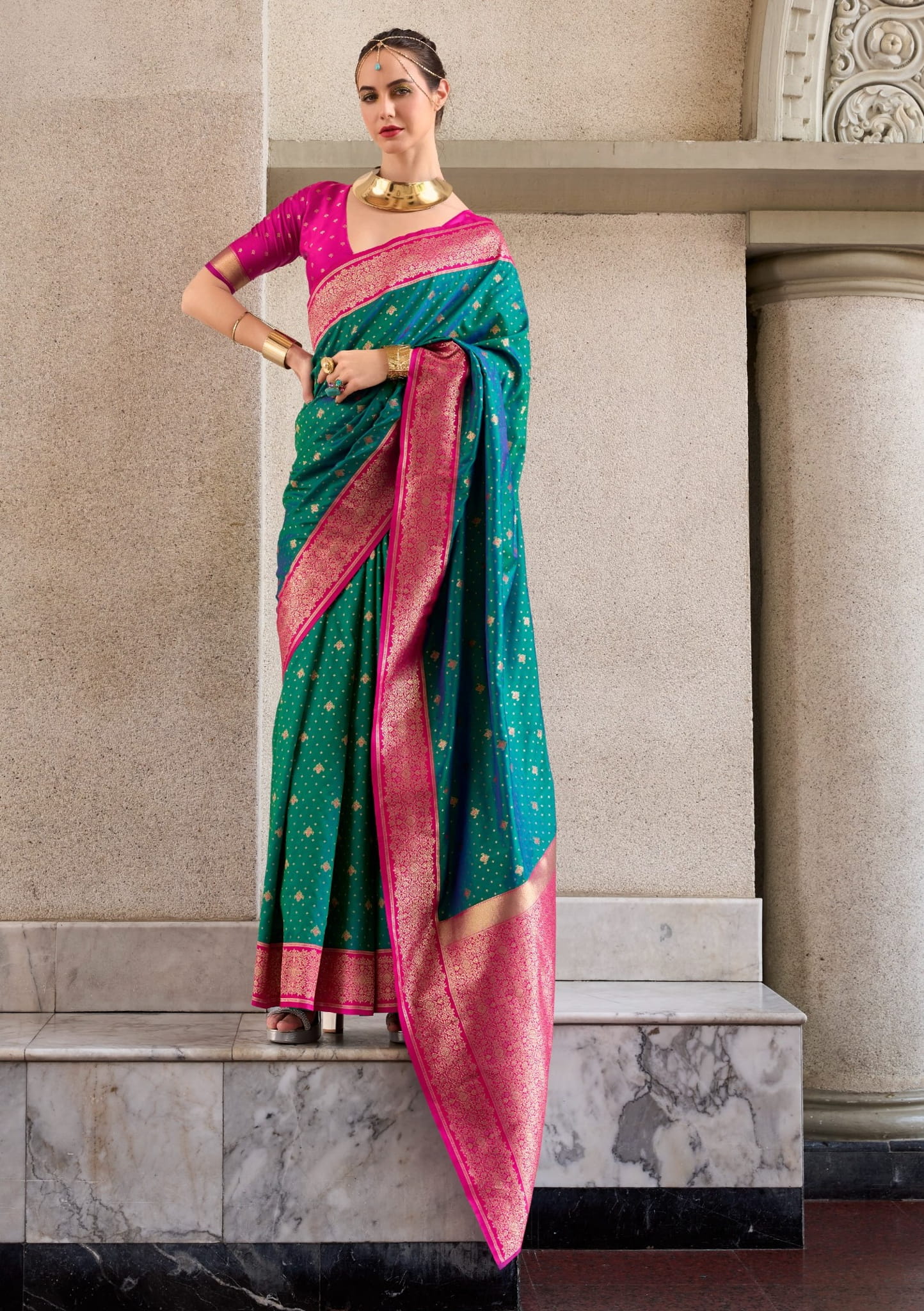 Whether you're attending a wedding, festive celebration, or special occasion, this saree offers a perfect balance of tradition, sophistication, and glamour.