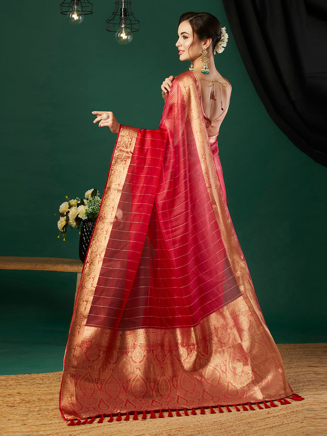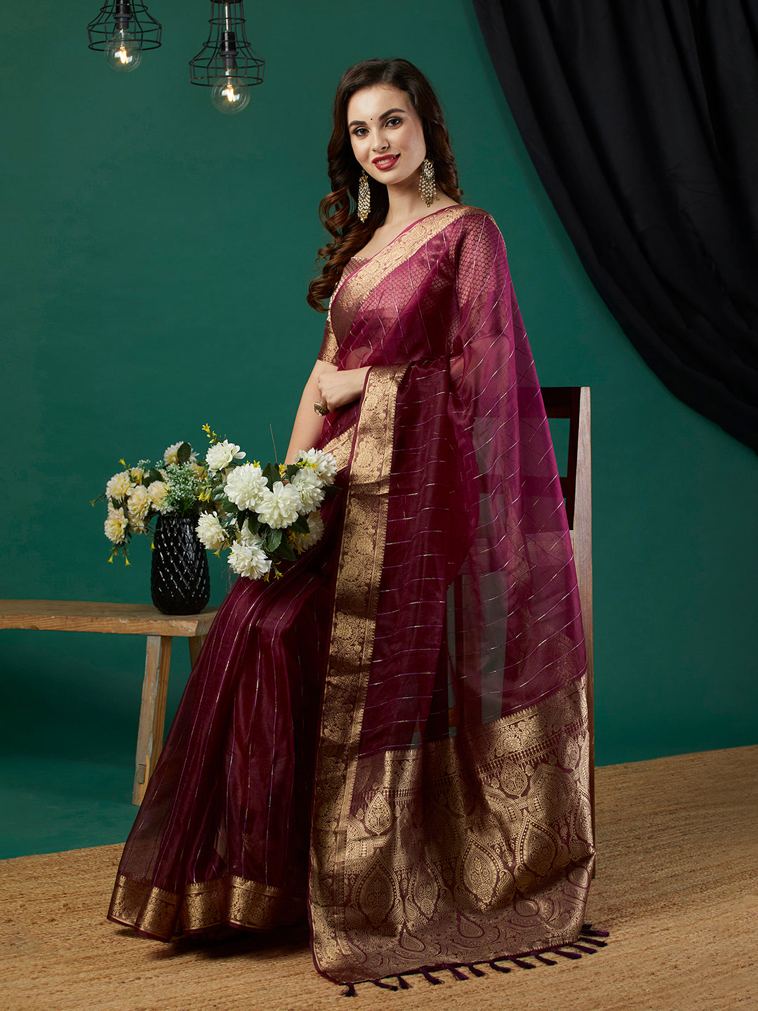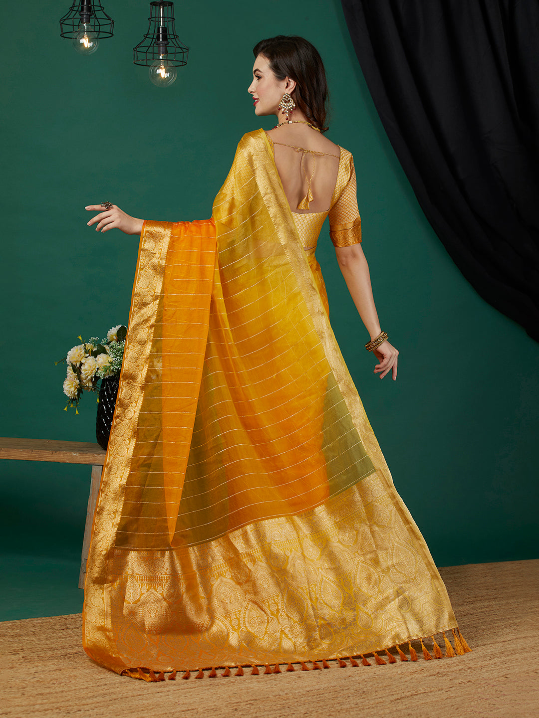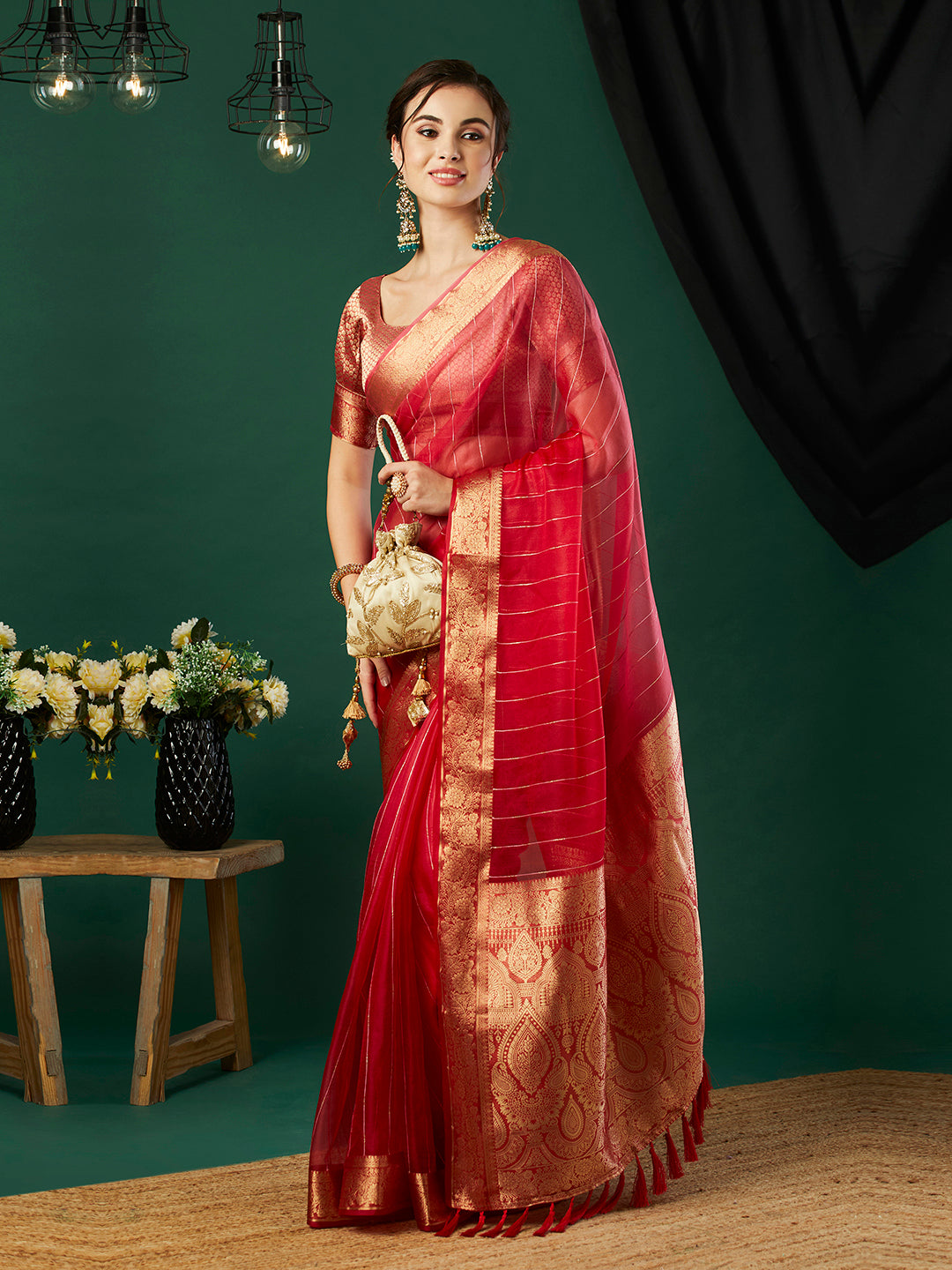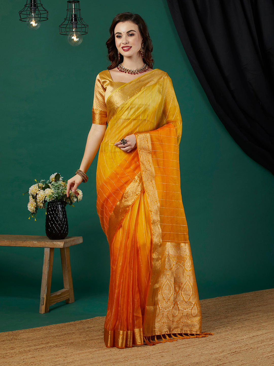 Our sarees are created using a combination of modern weaving technologies (like jacquard, air-jet, and rapier looms) and traditional craftsmanship. Fabrics are processed, finished, and often embellished in-house to ensure consistent quality.