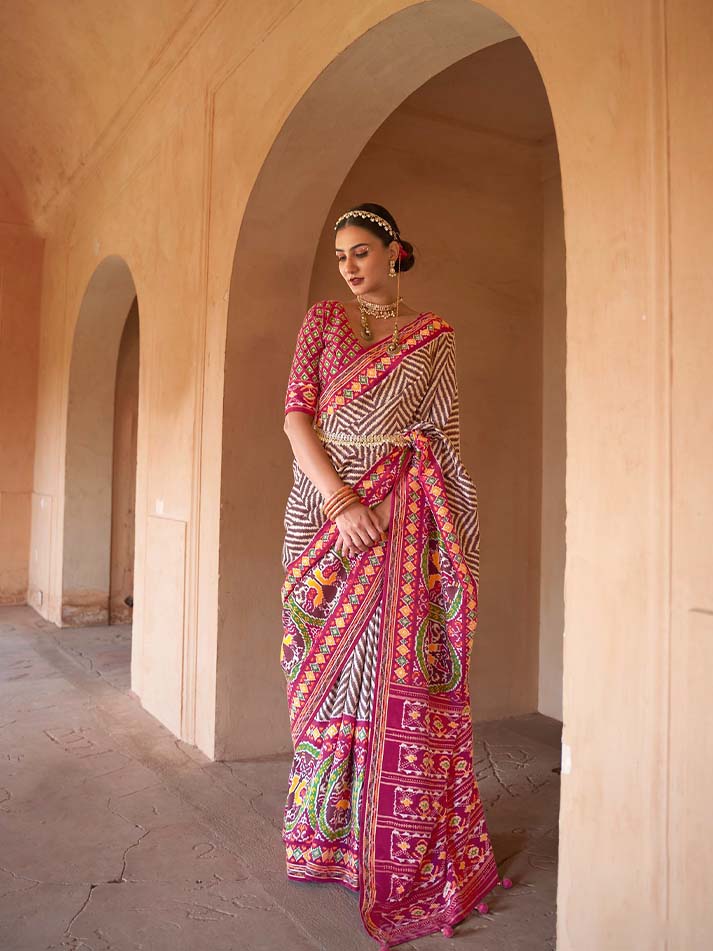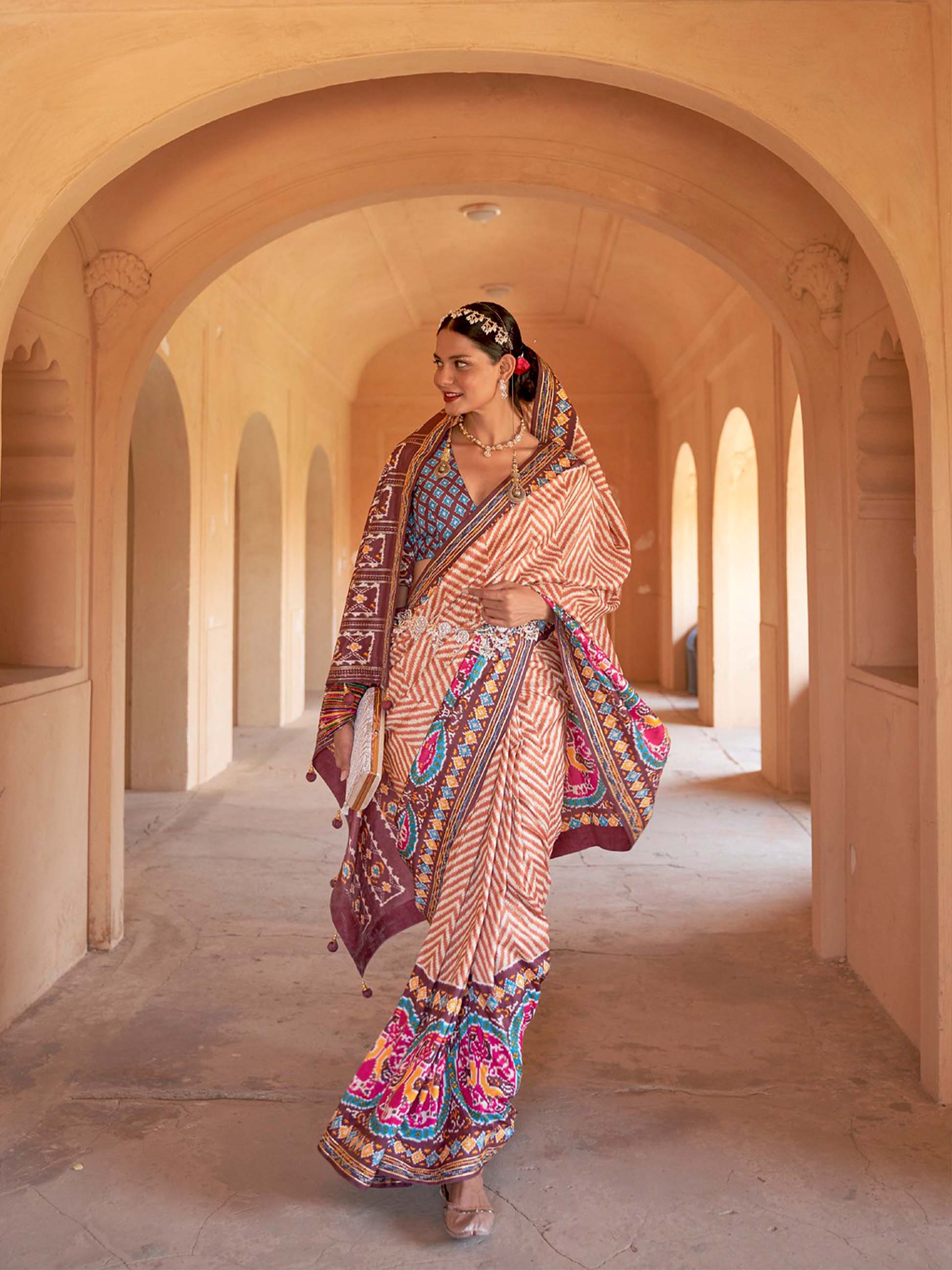 Our sarees are created using a combination of modern weaving technologies (like jacquard, air-jet, and rapier looms) and traditional craftsmanship. Fabrics are processed, finished, and often embellished in-house to ensure consistent quality.